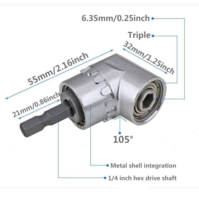 Destornillador de ángulo recto con cabezal giratorio de 90 grados, taladro eléctrico, varilla de extensión universal con manguito de ángulo recto