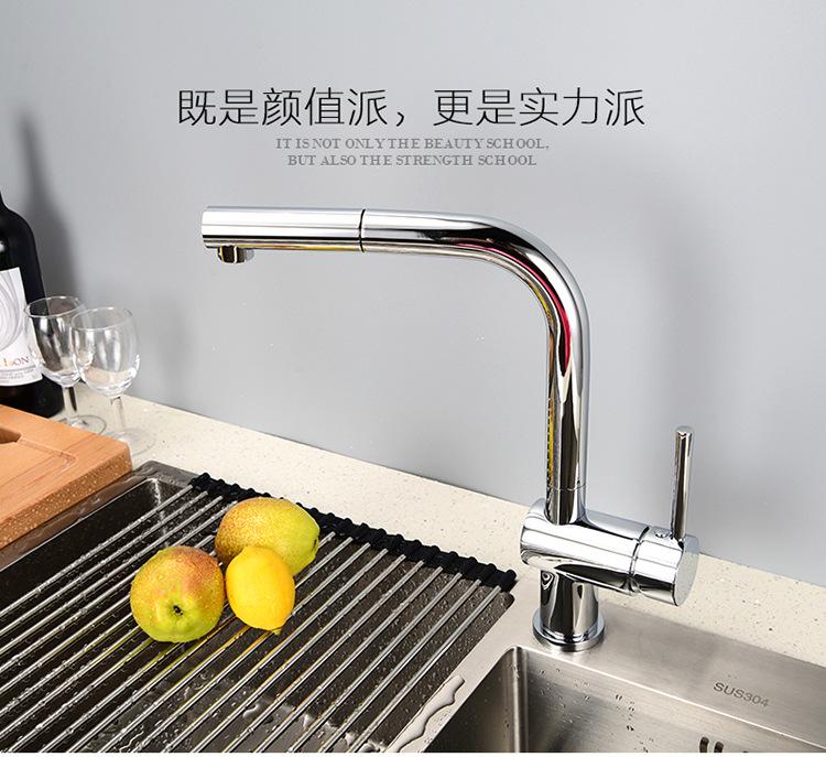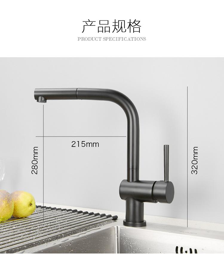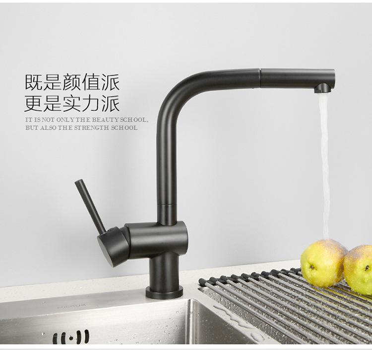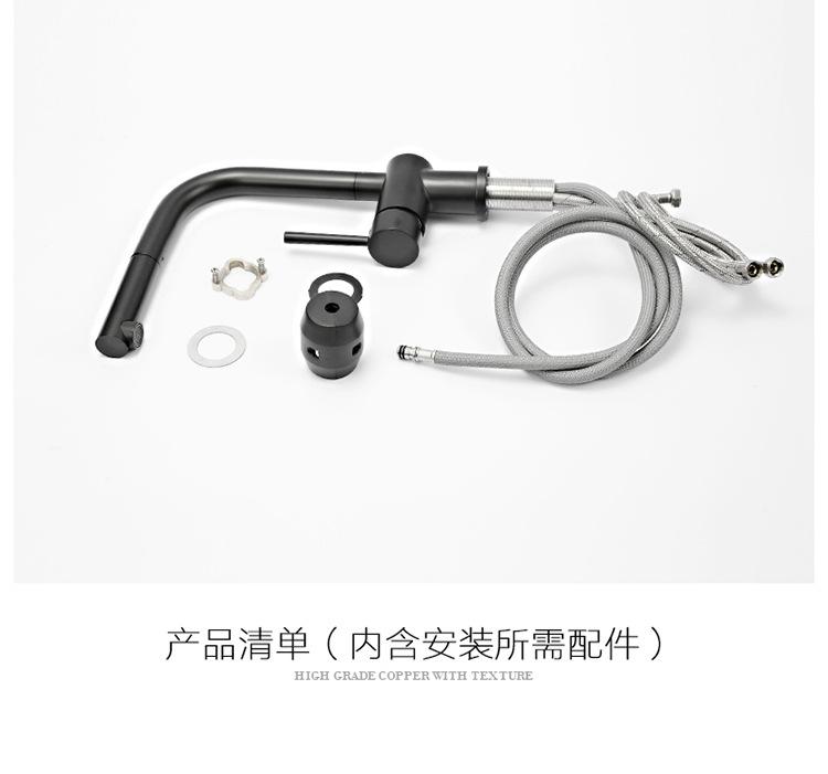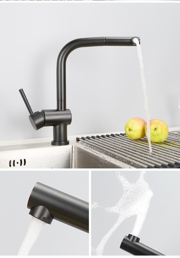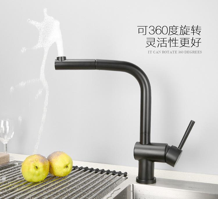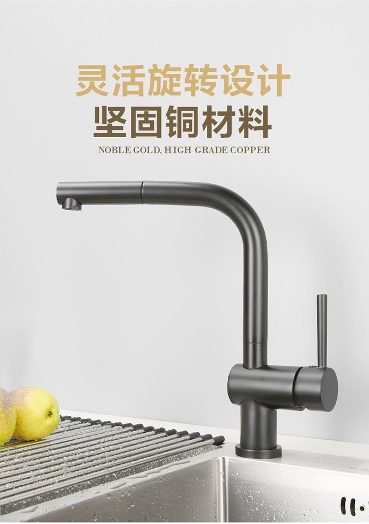 Fregadero de cocina extraíble, giratorio, de cobre negro, con agua caliente y fría, para verduras, lavavajillas, grifo telescópico de un solo orificio