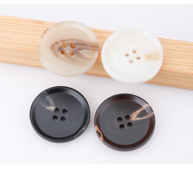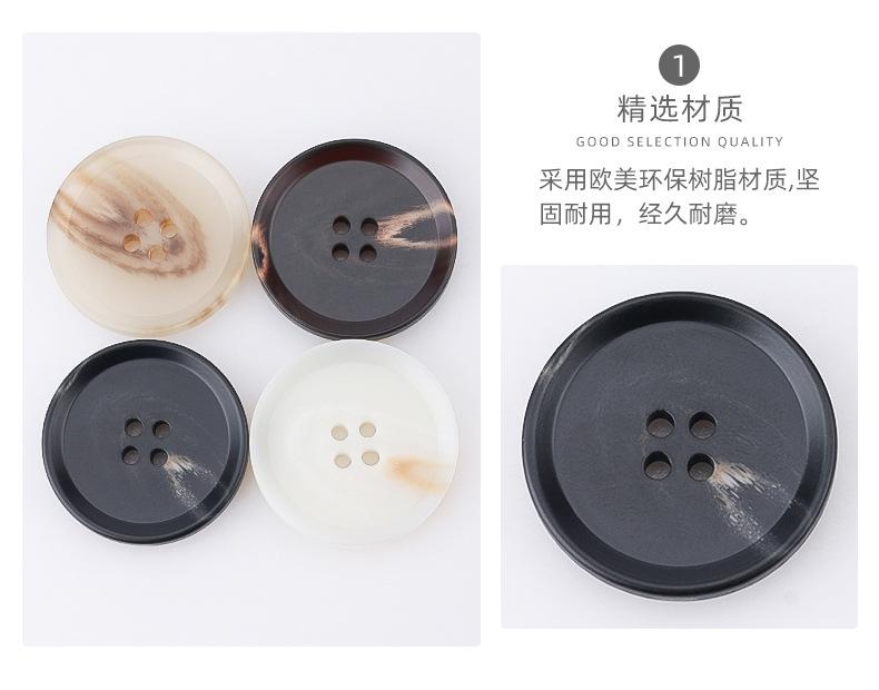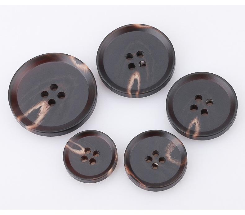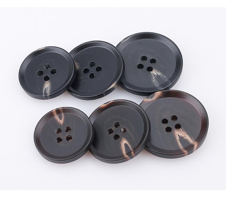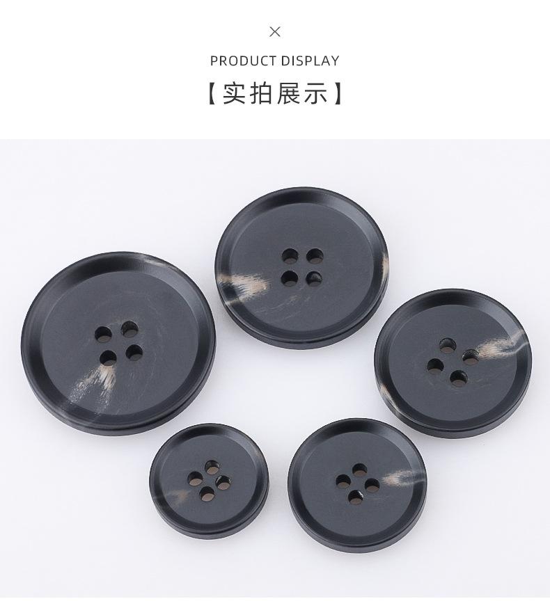 Botón de resina con patrón de cuatro ojales, botón para abrigo, cortavientos, suéter, traje, botón de abrigo, botón de borde estrecho negro, fábrica al por mayor