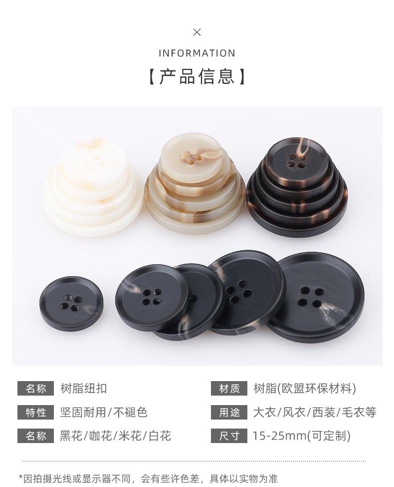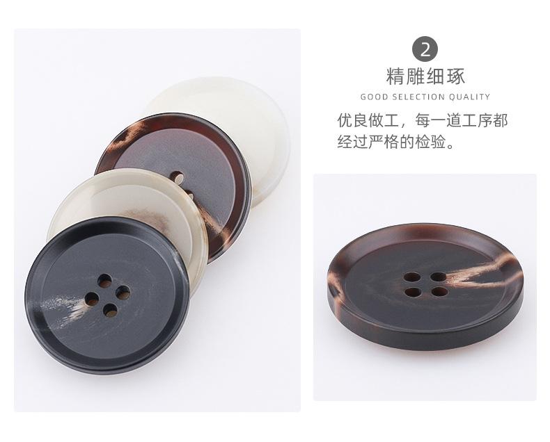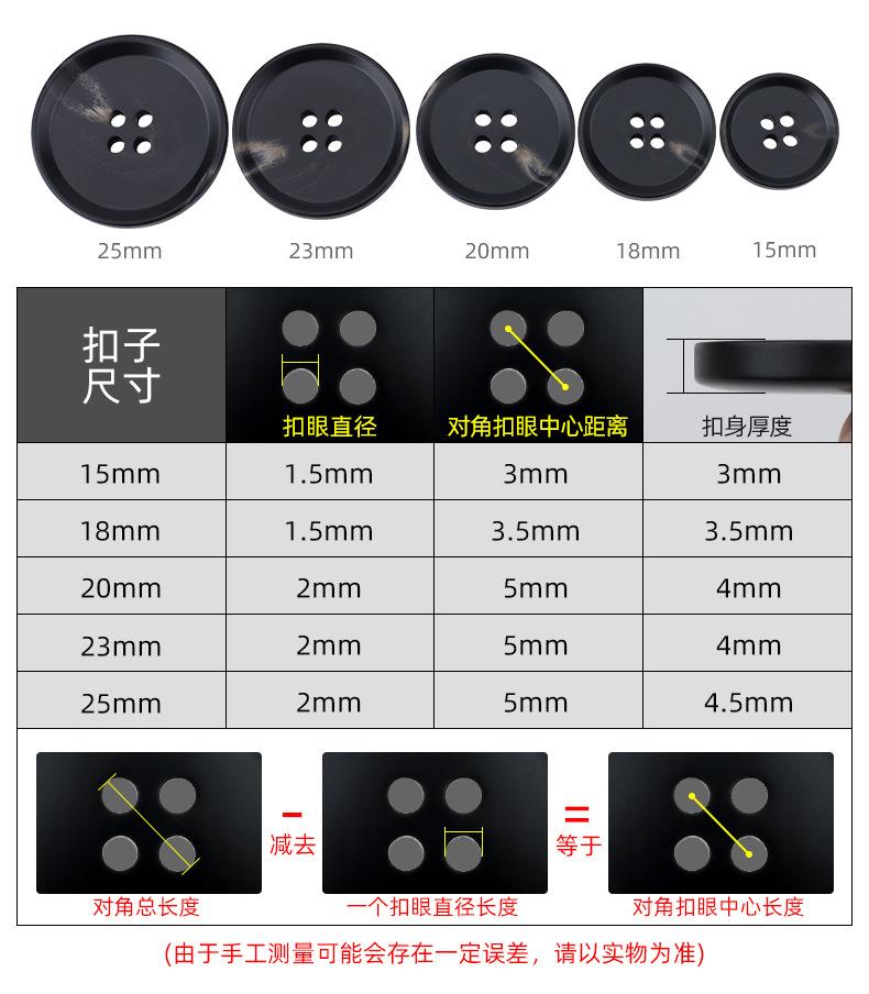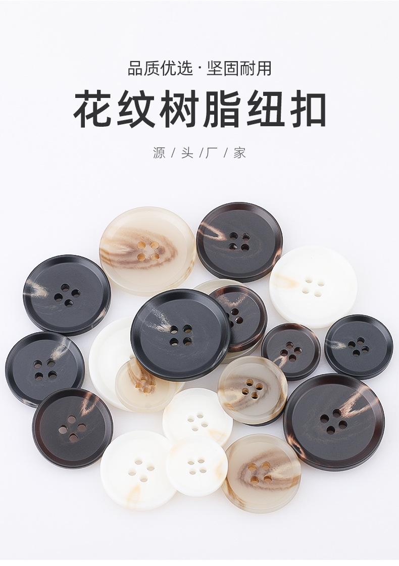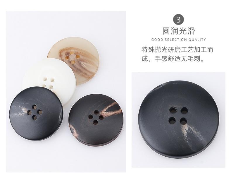 Botón de resina con patrón de cuatro ojales, botón para abrigo, cortavientos, suéter, traje, botón de abrigo, botón de borde estrecho negro, fábrica al por mayor