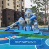 Tobogán al aire libre de gran tamaño, combinación de plástico, jardín de infantes, marco de escalada comunitario, instalaciones de entretenimiento interior para niños, acero inoxidable