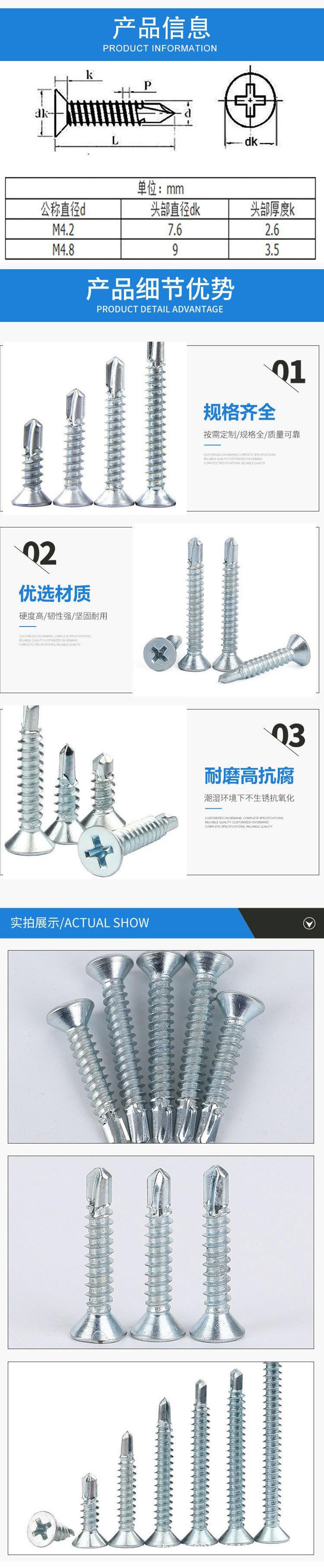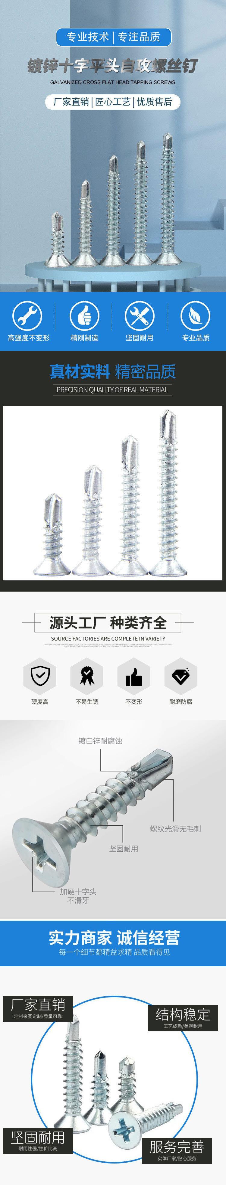 Tornillo autorroscante de cabeza avellanada cruzada de hierro galvanizado, tornillo autoperforante de cabeza plana, tornillo de cola de milano, clavo de cola m4.2m4.8