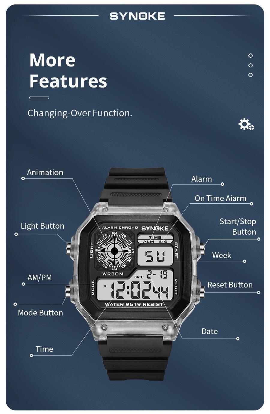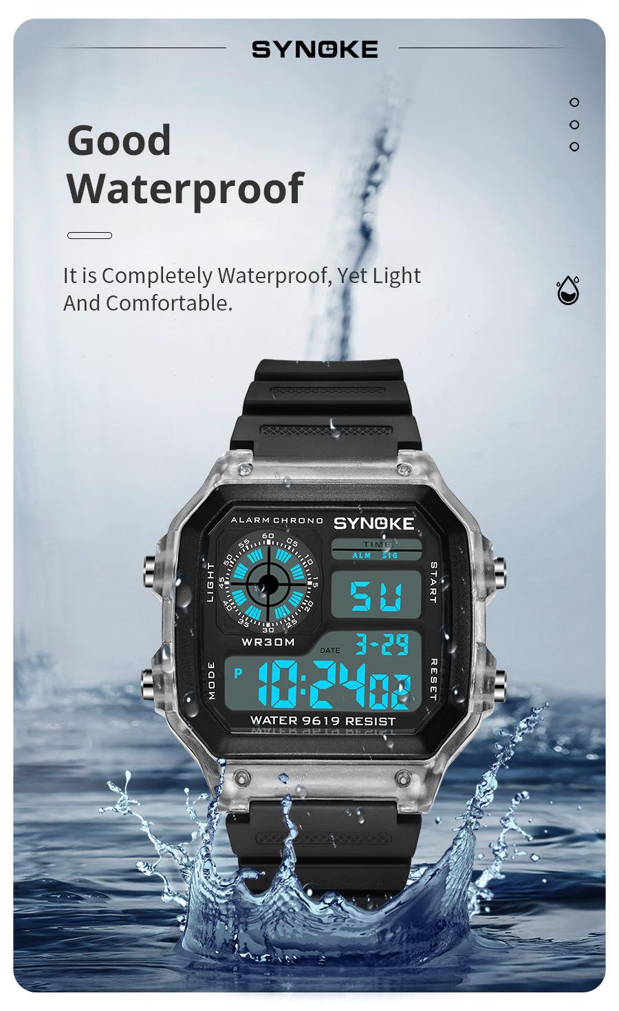 Productos de fábrica Reloj electrónico para estudiantes SYNOKE luminoso impermeable deportivo para hombre cuadrado clásico retro tendencia deportivo nuevos productos