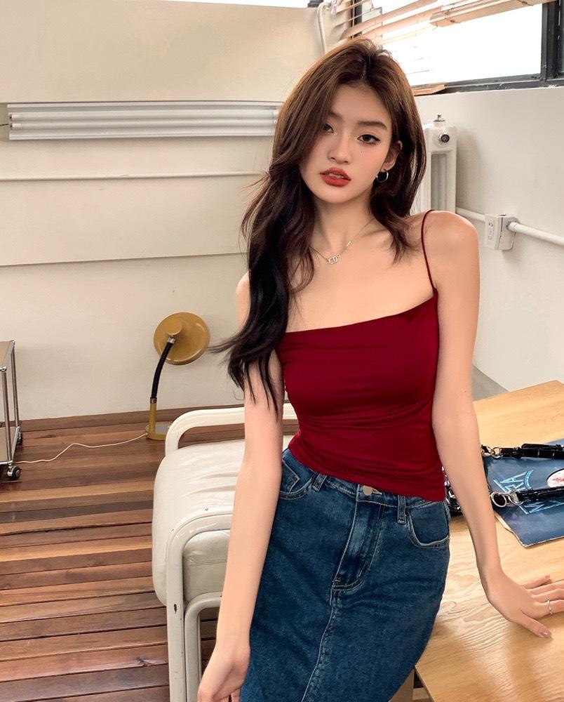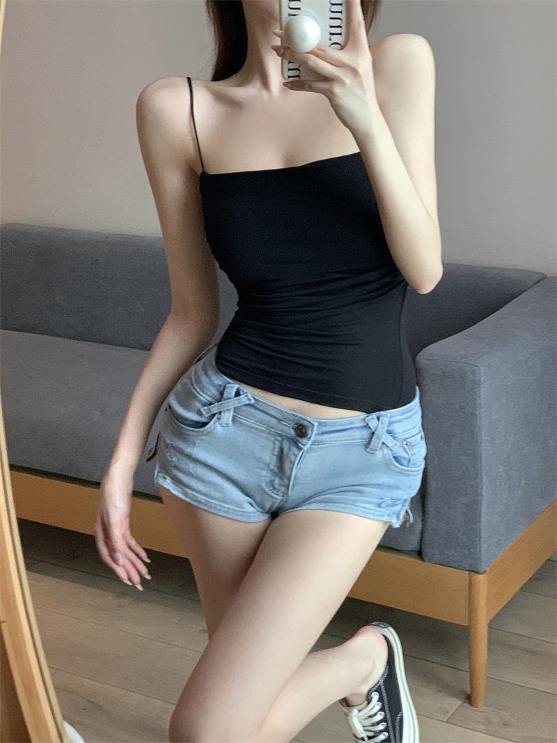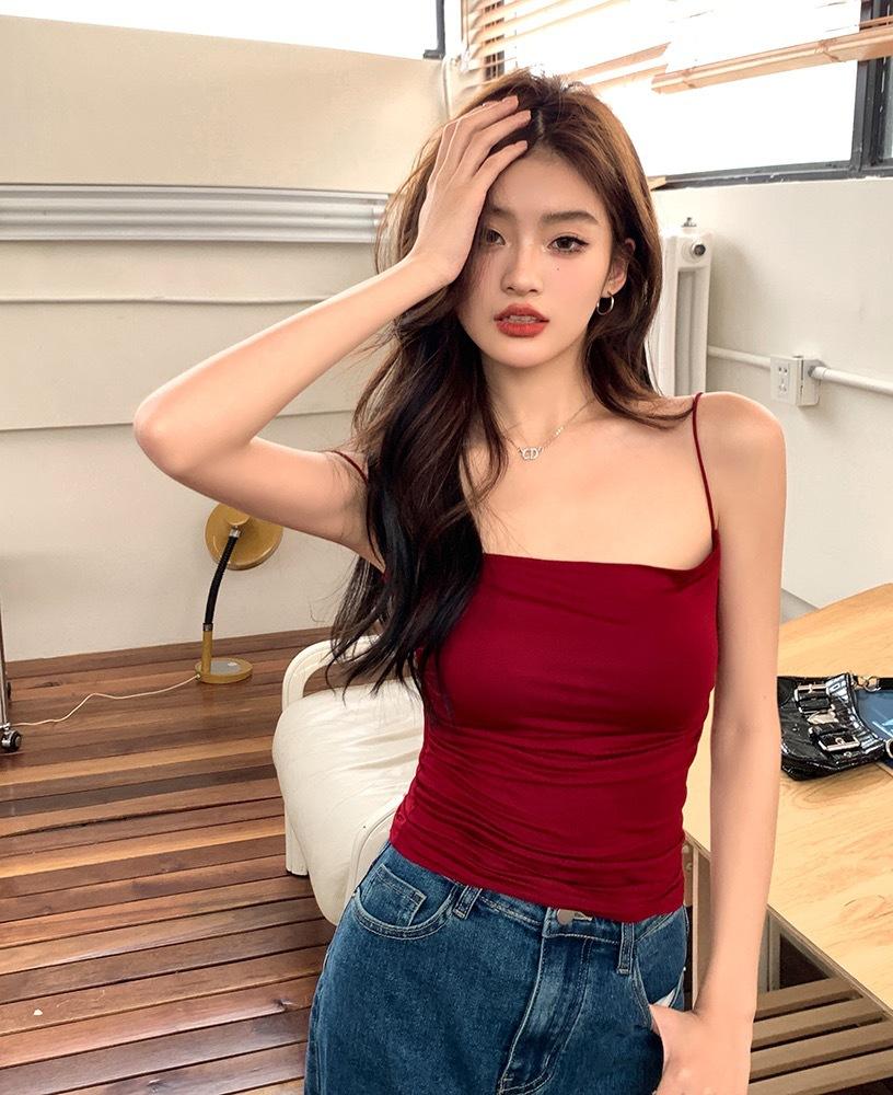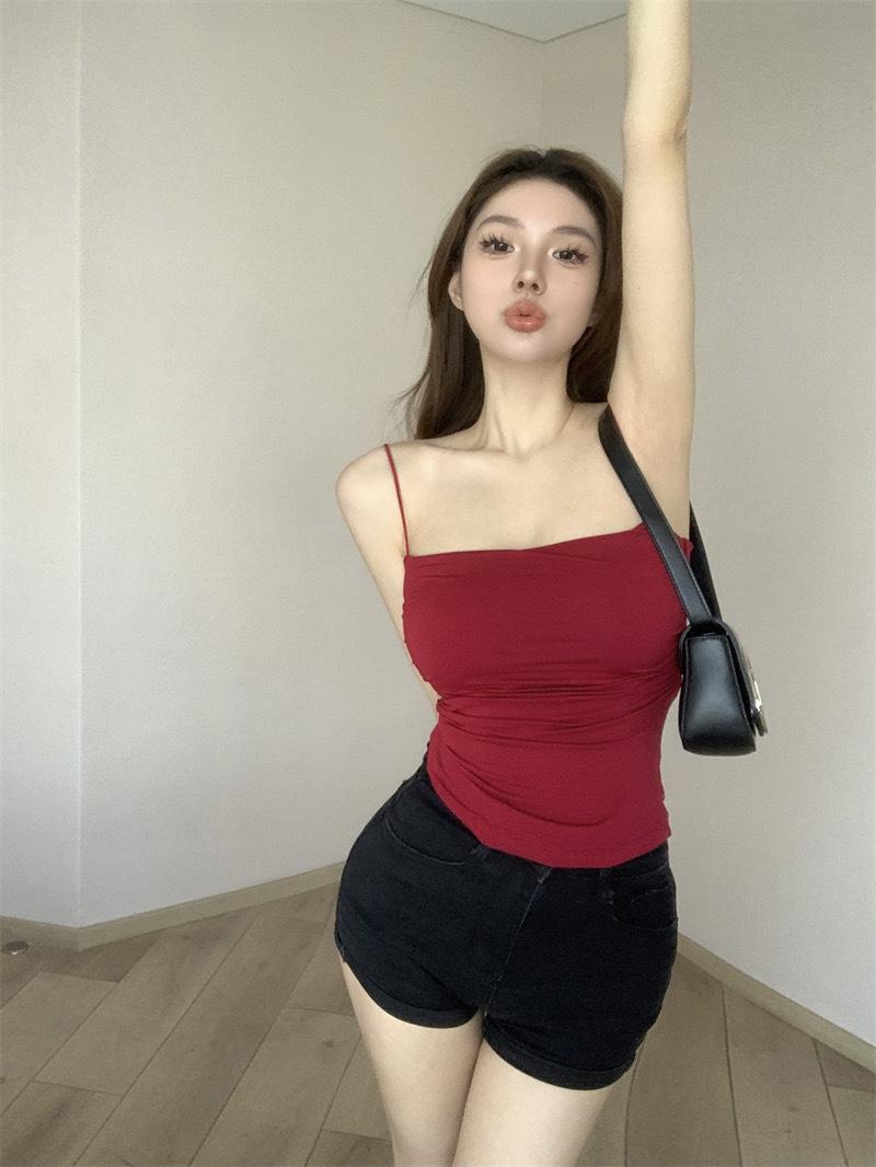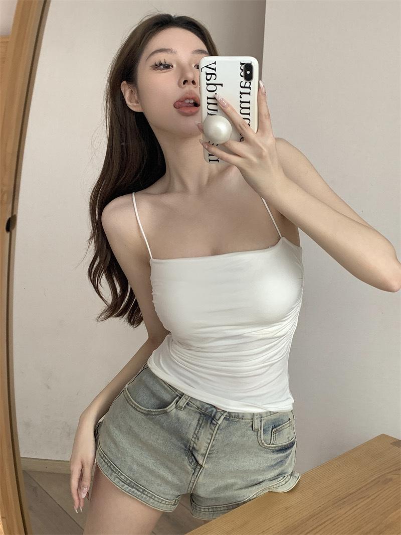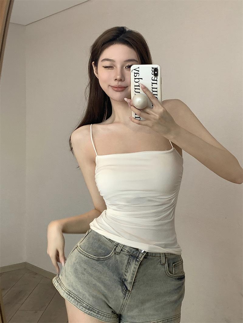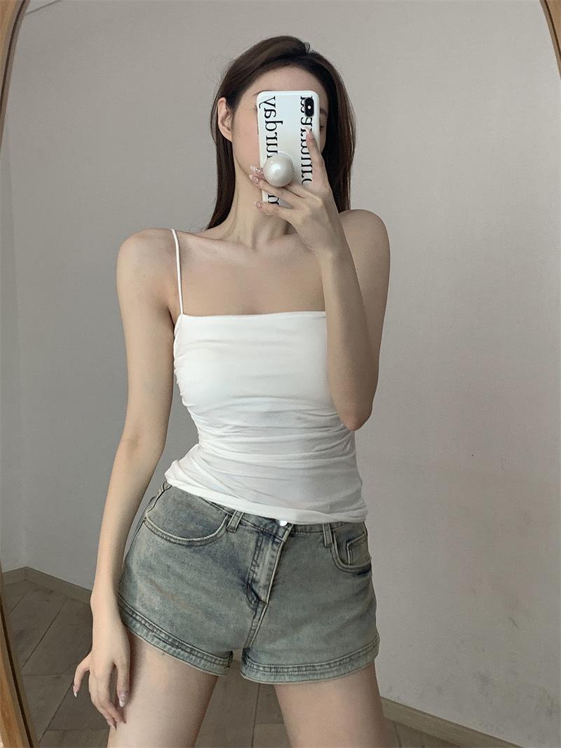 Chaleco de verano con espalda plisada, ajustado y sexy para mujer, ropa interior de celebridad de Internet, con almohadilla para el pecho, ropa exterior, top de fondo