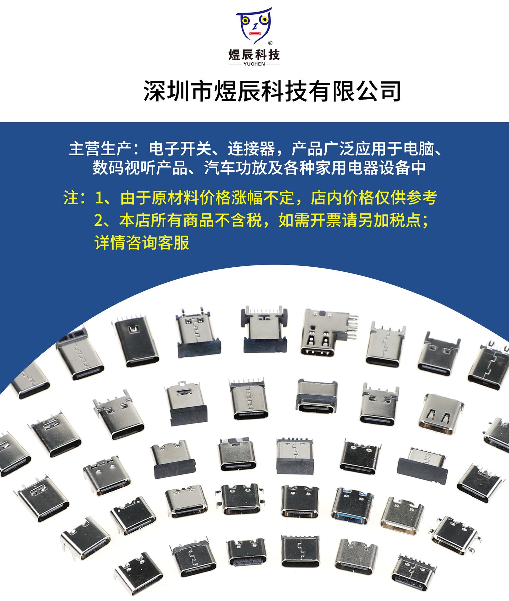 Type-c female base 6p four-pin patch on board, straight plug, vertical patch, sunken plate, 16p patch 3.1usb
