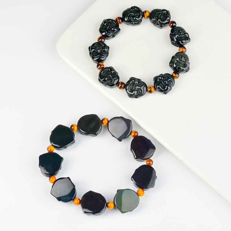 [Nombre del Producto]: Pulsera de Cabeza de Buda de Obsidiana Arcoíris