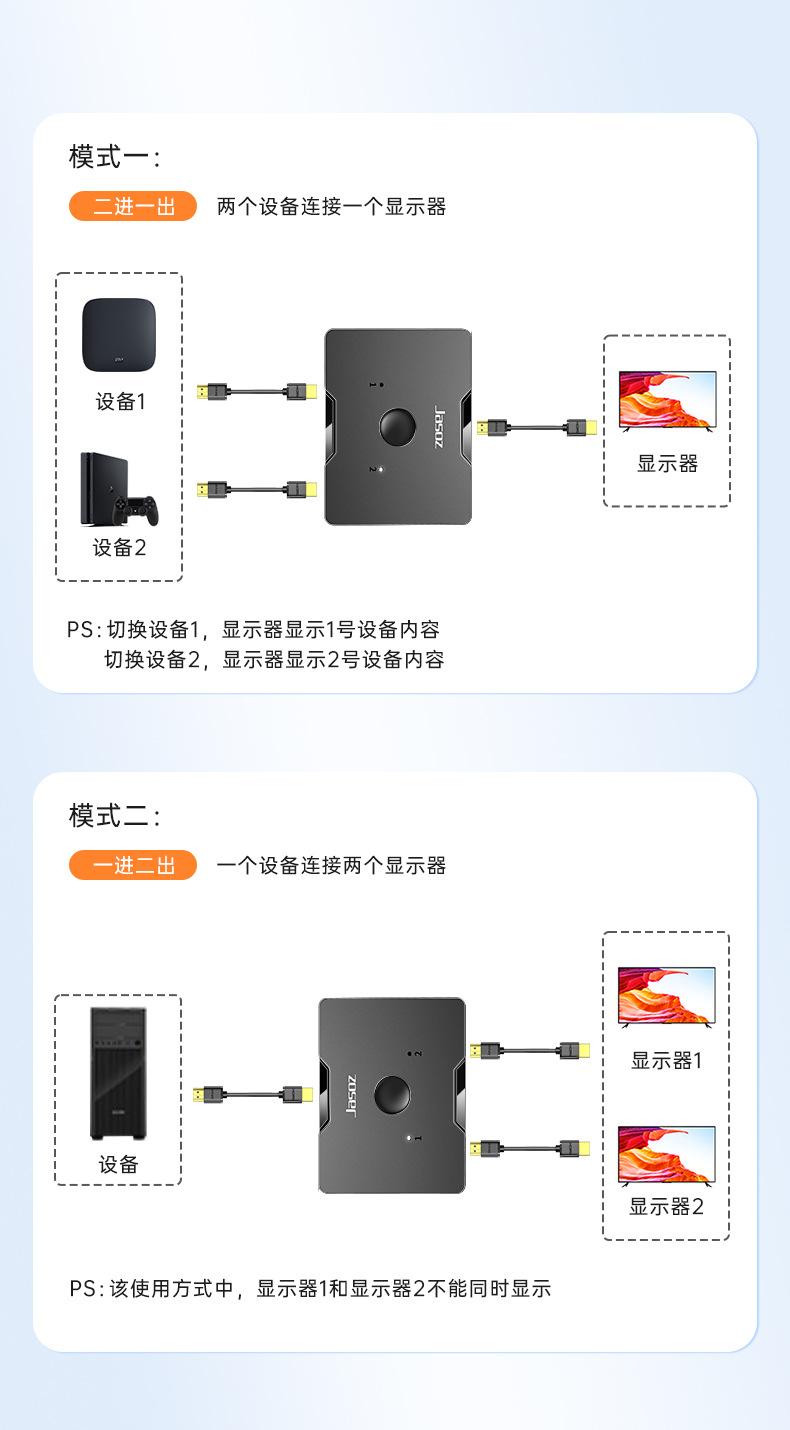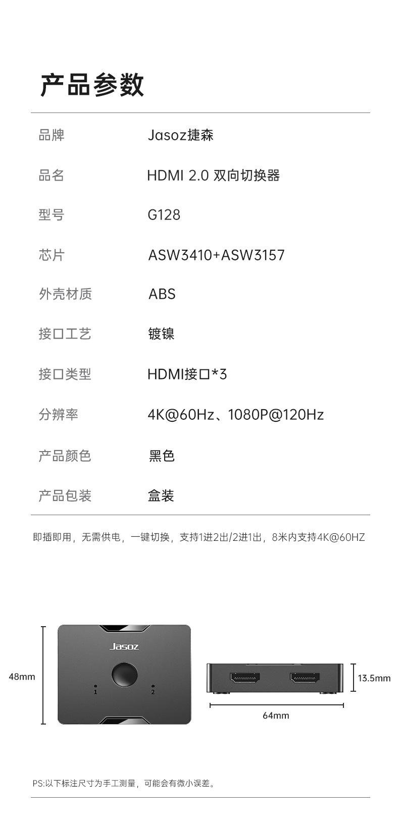 Conmutador HDMI dos entradas una salida divisor de pantalla 4k HD computadora 1 entrada 2 salidas conversión bidireccional divisor de audio y video