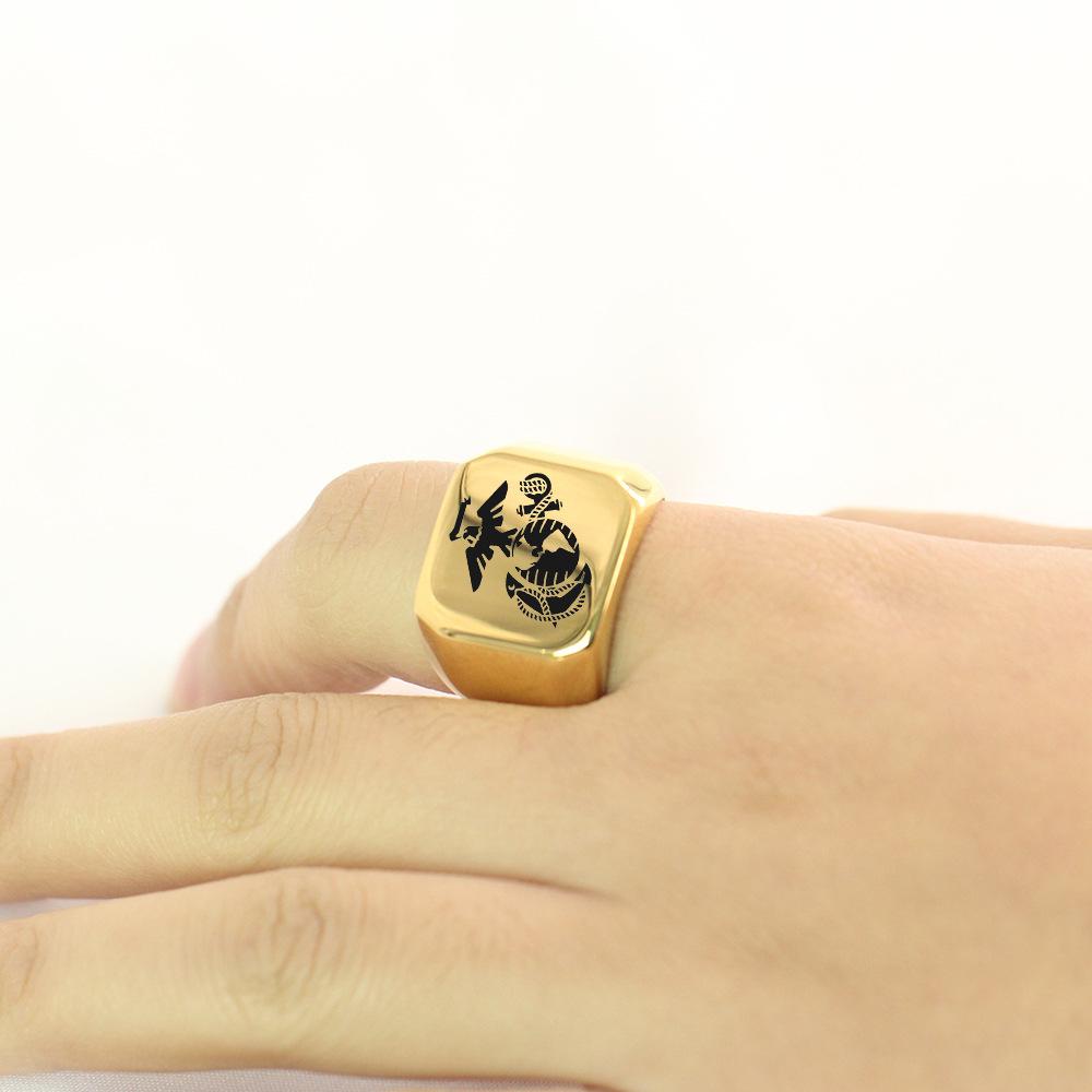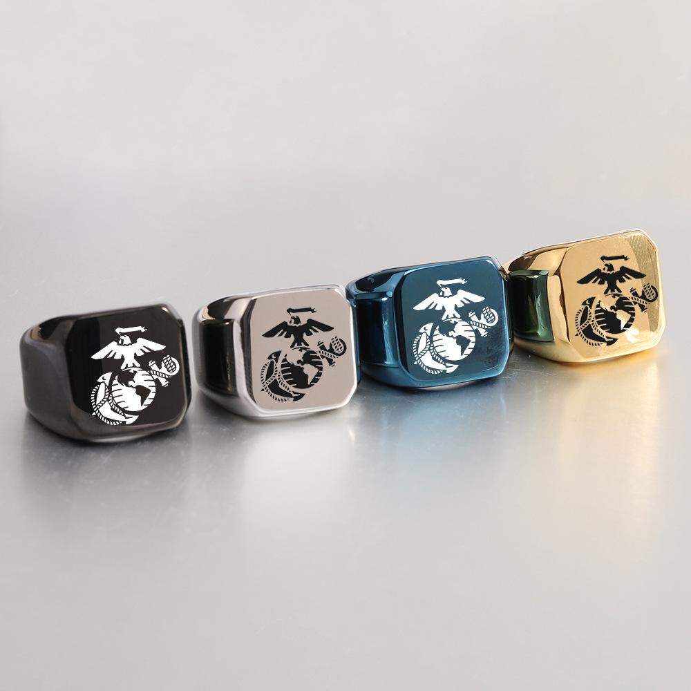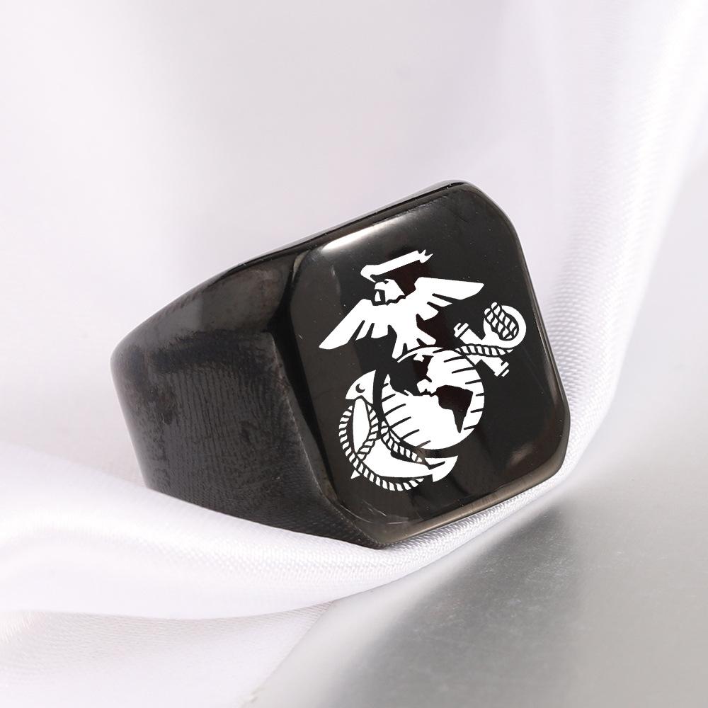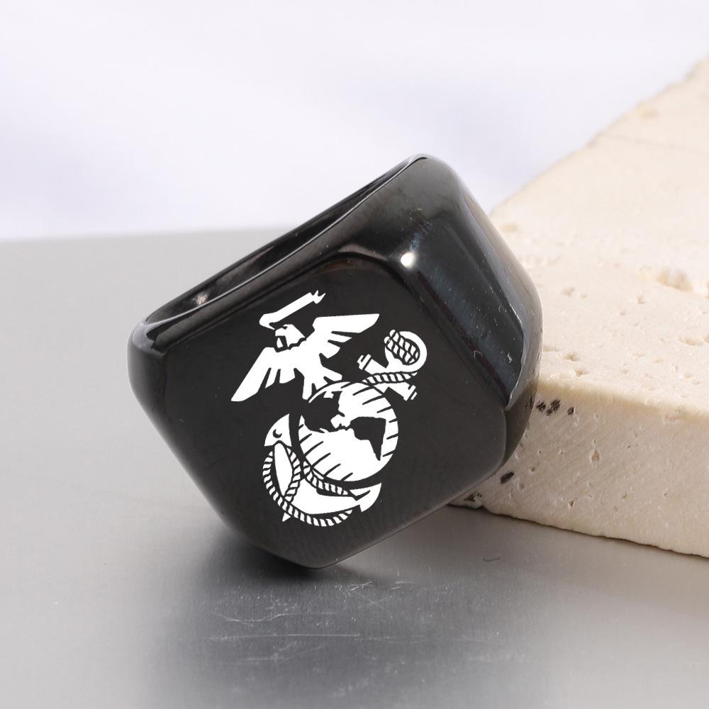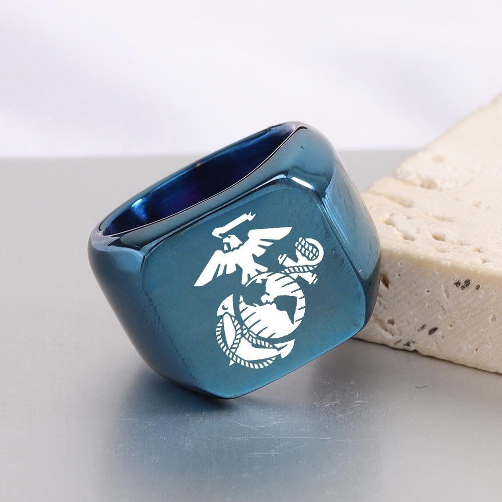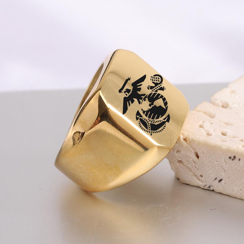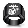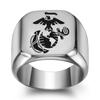 Anillo de acero de titanio con patrón de Cuerpo de Marines de personalidad europea y americana para hombre, punk retro cuadrado de 18 mm, moda para hombre de cuatro colores al por mayor