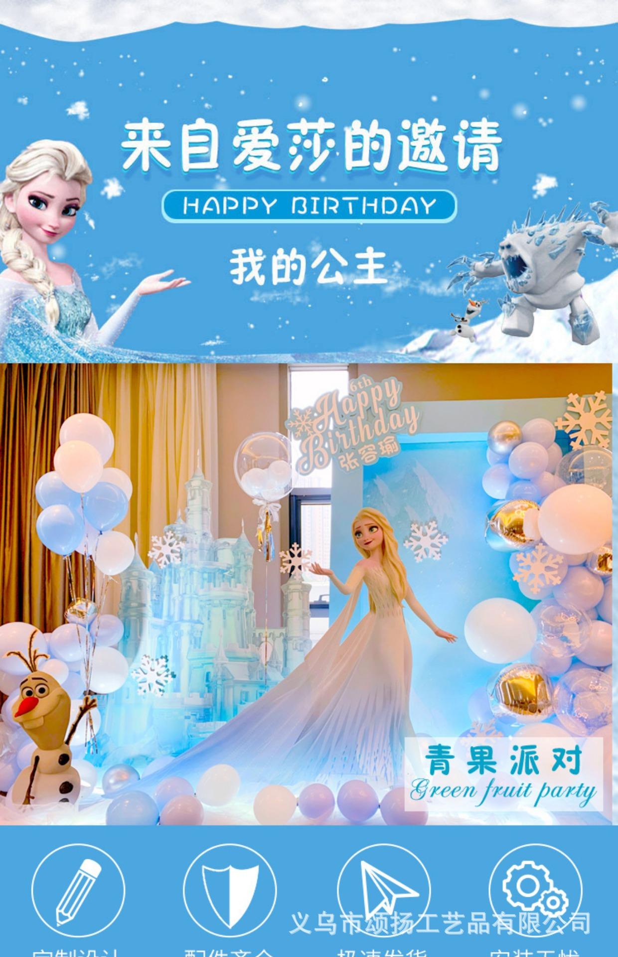 Compra Venta al por mayor, diseño de cumpleaños con temática de Frozen, fiesta de globos para niños de un año, tablero KT, decoración de fondo, Aisha Girls al por mayor en Joom.pro