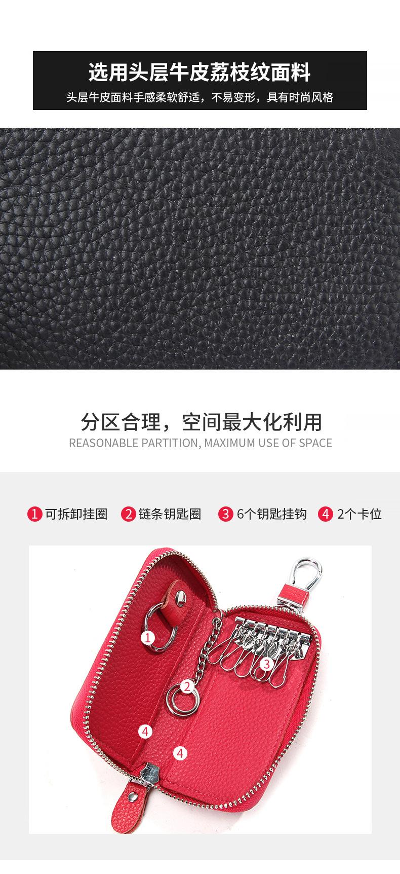 Estructura: 1 anillo colgante desmontable, 1 llavero de cadena, 6 ganchos para llaves, 2 ranuras para tarjetas