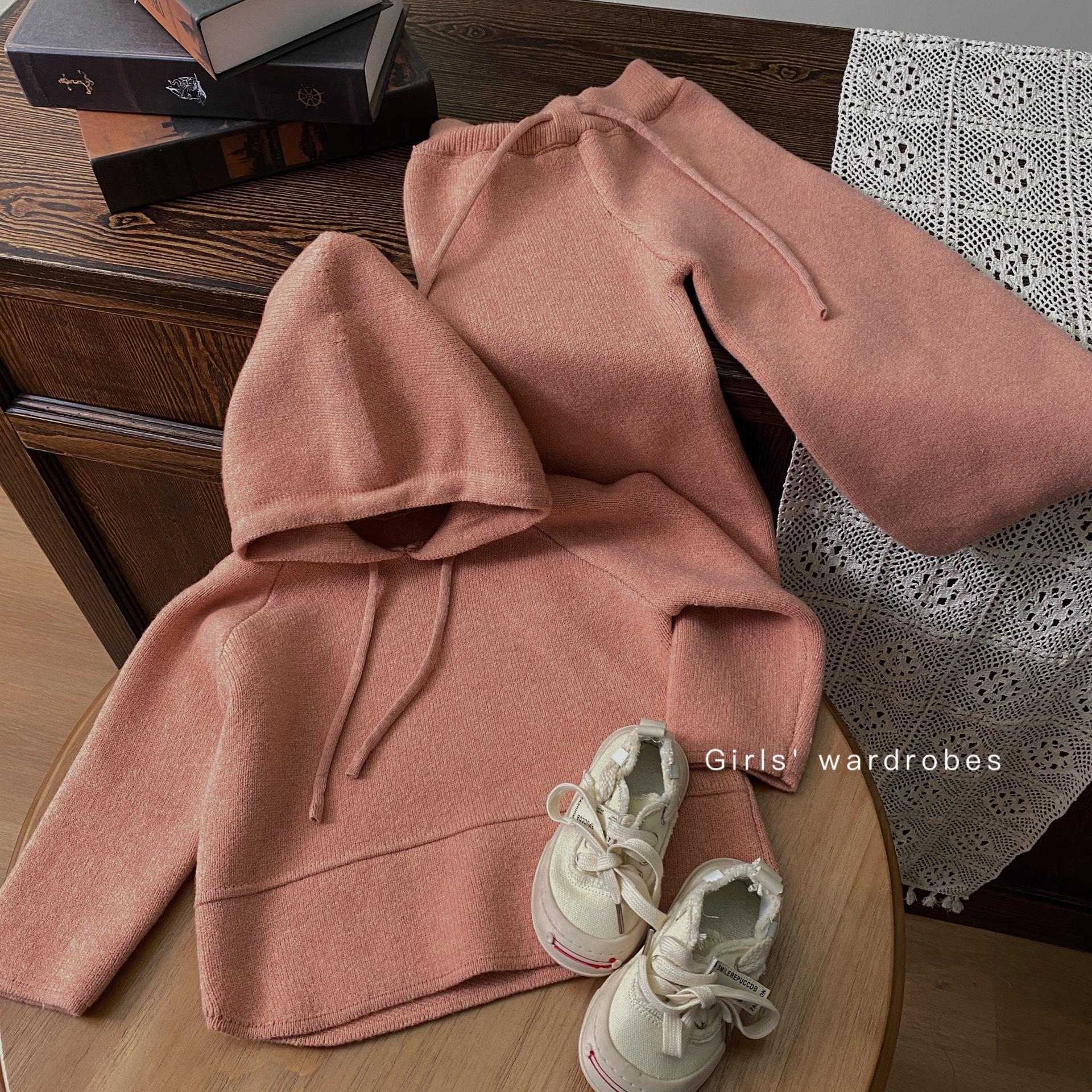 Gran Venta No Reembolsable y No Intercambiable [Orden Racionalidad] Trajes de Otoño e Invierno para Niñas Suéteres Tejidos con Capucha a la Moda Pantalones Casuales