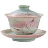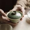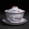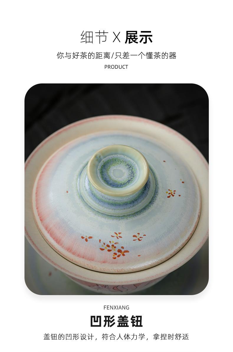 Cambio de horno pintado a mano leña quemada Jingdezhen gris hierba y madera tazón de té único de alta gama taza de té zorro de nueve colas volando cielo tres Cai tazón con tapa