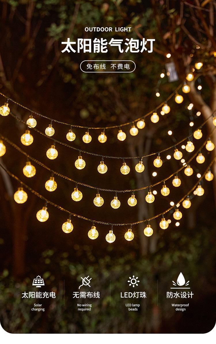 Guirnalda de luces LED con forma de bola de burbujas, luces solares de cinco puntas de colores, venta al por mayor, luces impermeables para acampar al aire libre, luces decorativas intermitentes para patio