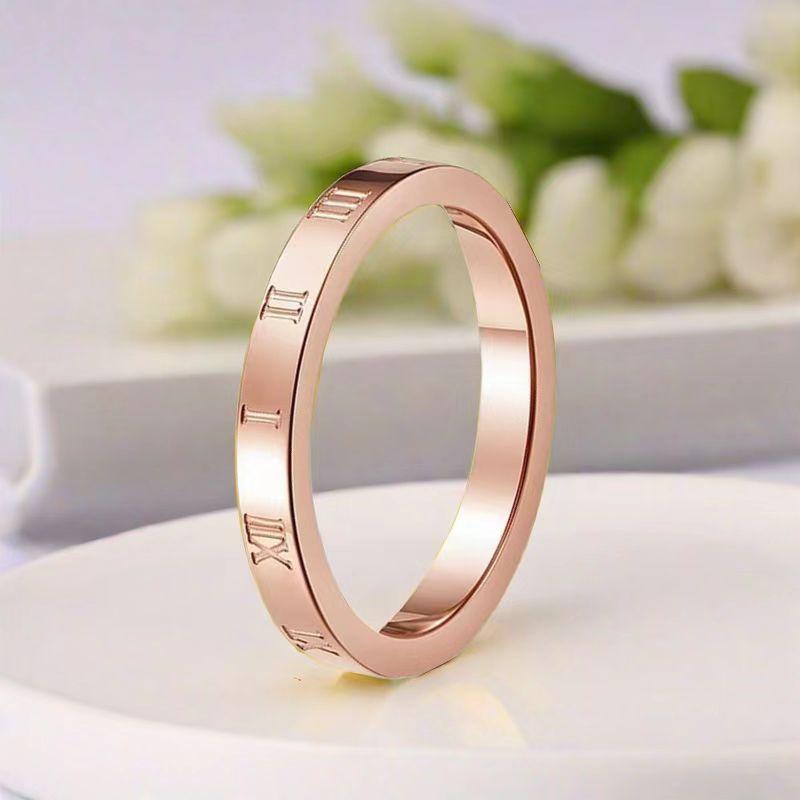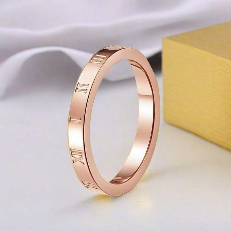 Anillo de Acero de Titanio para Mujer Venta al por Mayor Nicho Francés Grado Alto Europeo Anillo Liso para Mujer No se Desvanece Anillo de Números Romanos Extremadamente Fino