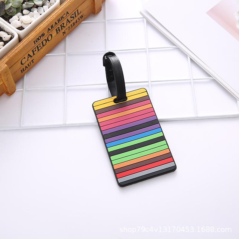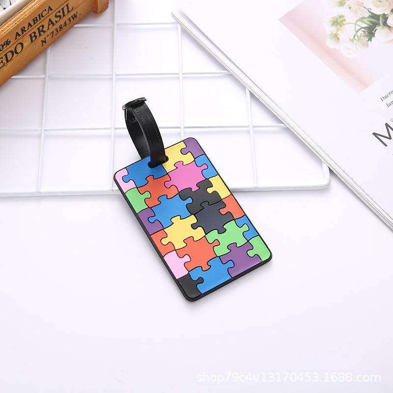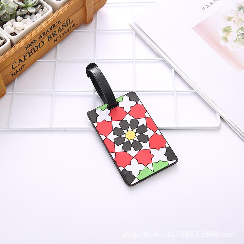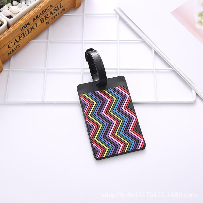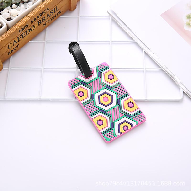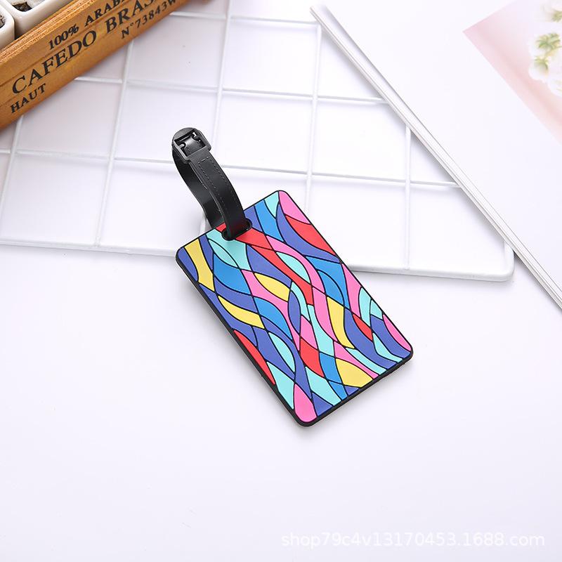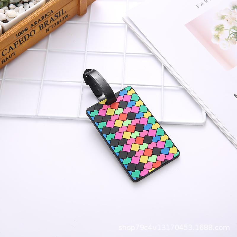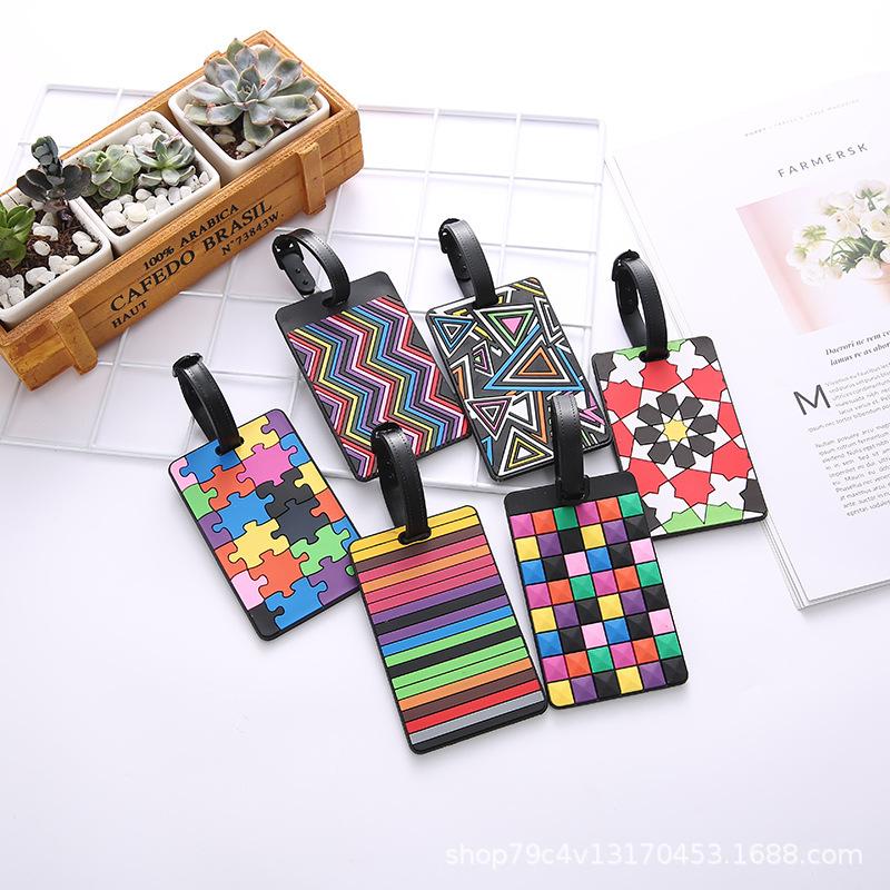 Fabricante de etiquetas de equipaje al por mayor, diseño geométrico de cuadros suaves de goma, tarjetero creativo, etiqueta para equipaje, maleta de viaje