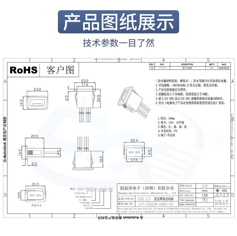 USB 2.0 direct pressure wire bonding type base without terminal
