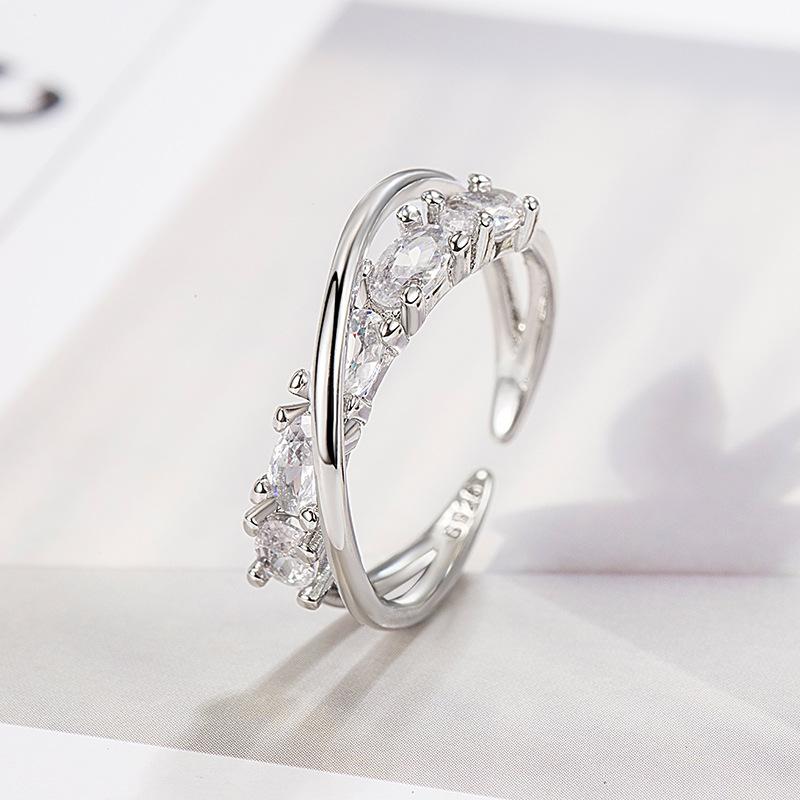 Anillo de circonita cruzada para mujer, diseño de nicho, anillo abierto compacto de alta calidad, anillo sencillo de moda que combina con todo.