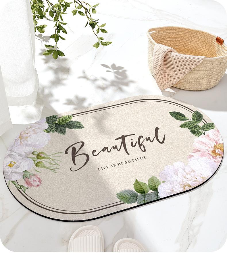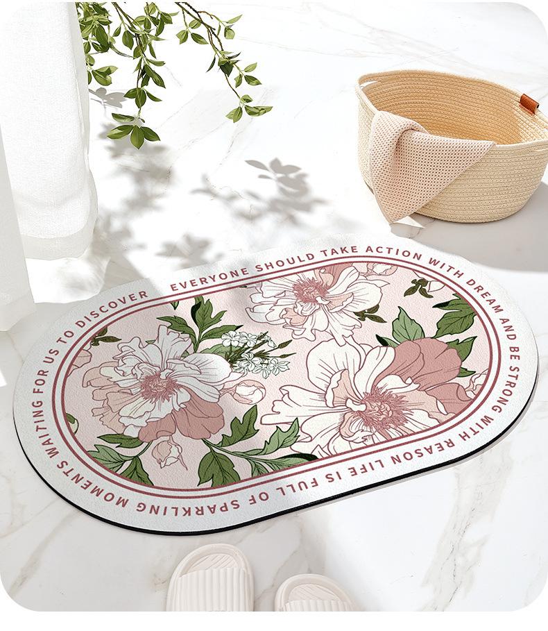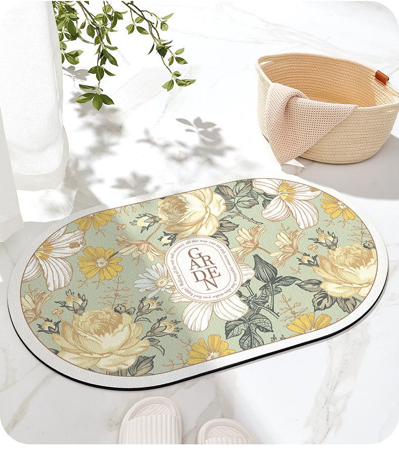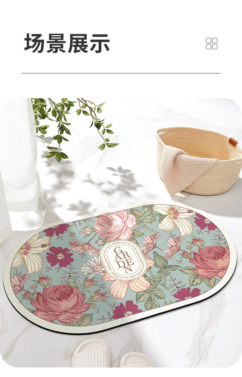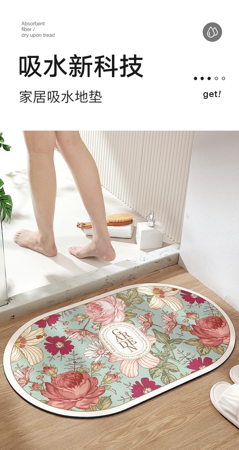 Alfombra absorbente antideslizante para baño, de secado rápido, con diseño de rosas transfronterizas, ideal para el hogar, el dormitorio y la puerta.