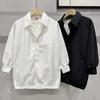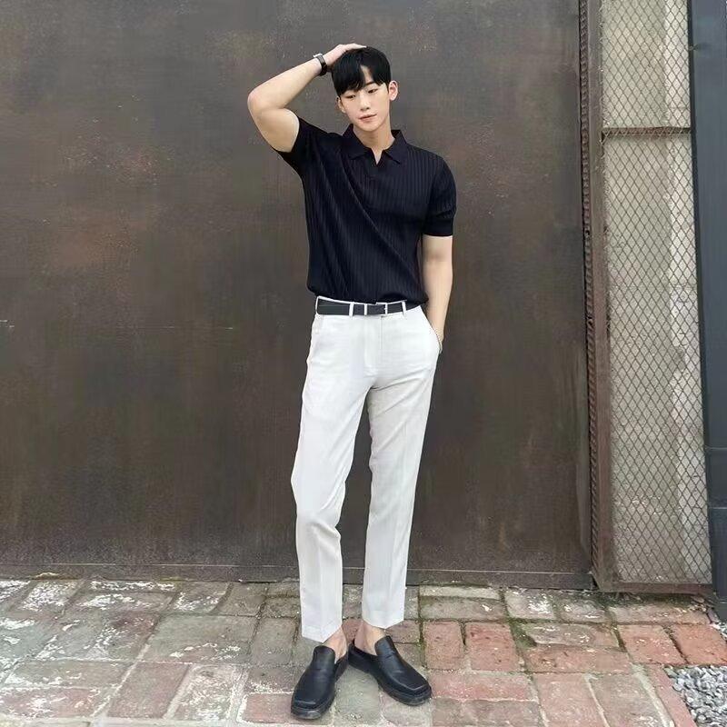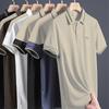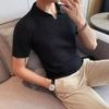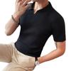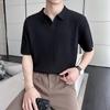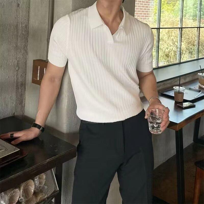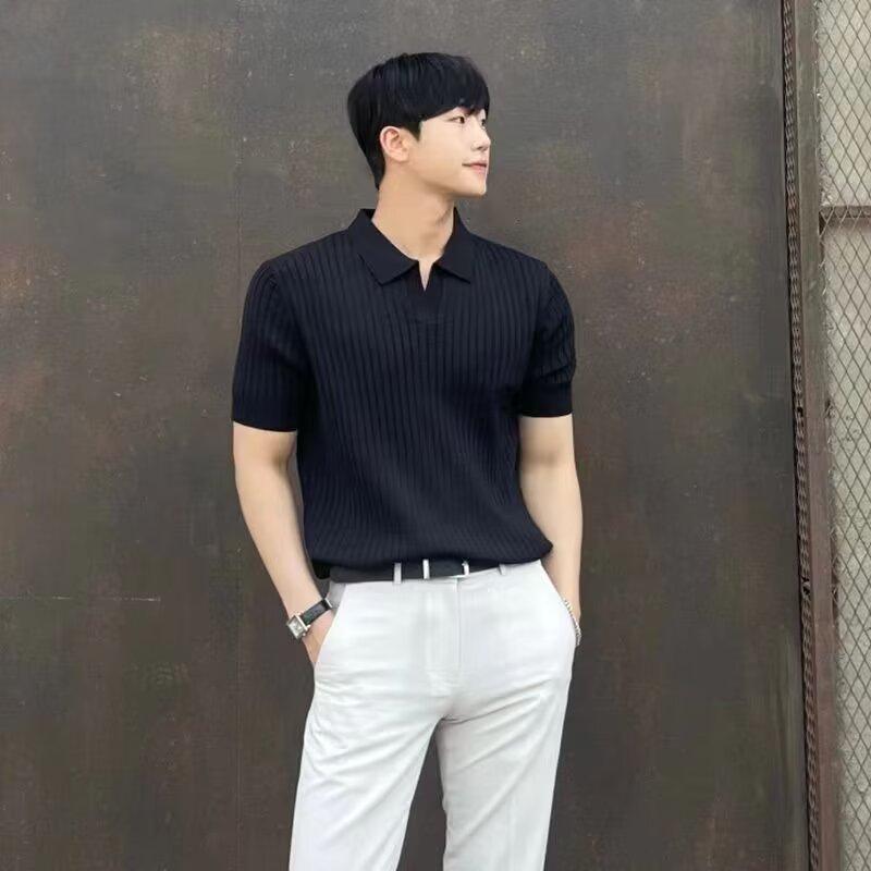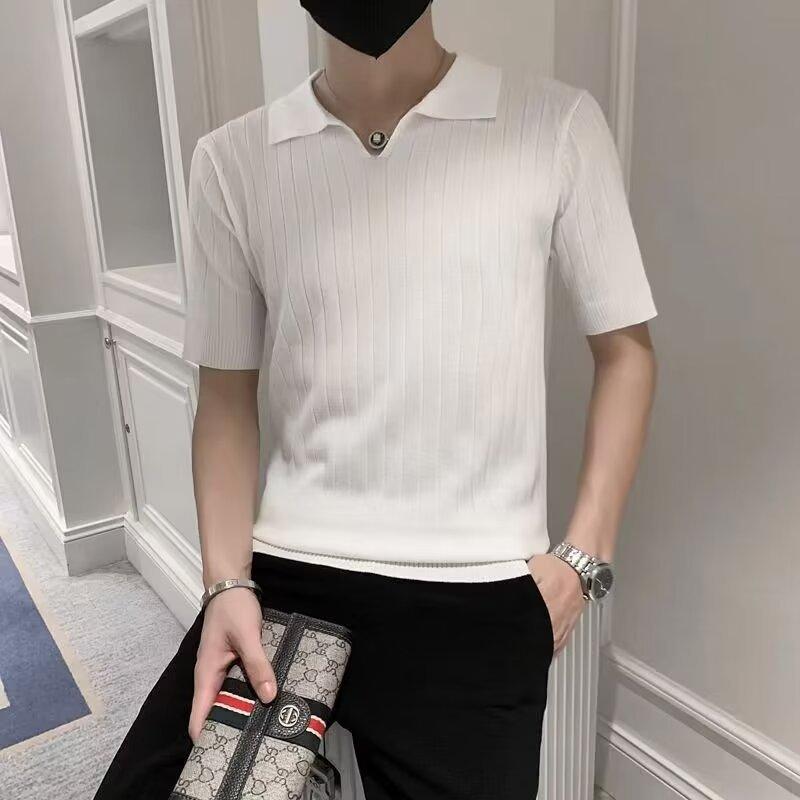 Camiseta de manga corta de seda de hielo de verano para hombre, polo de solapa fina, camisa de punto a rayas con cuello en V a la moda para hombre