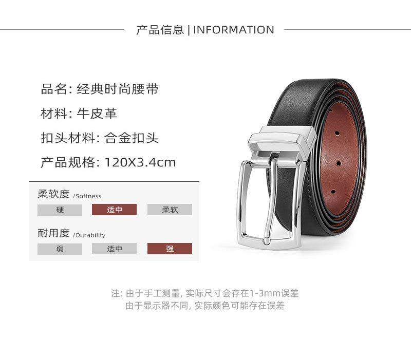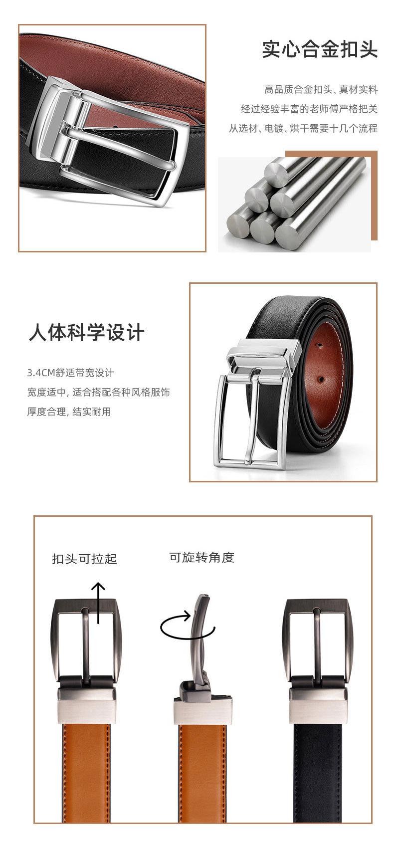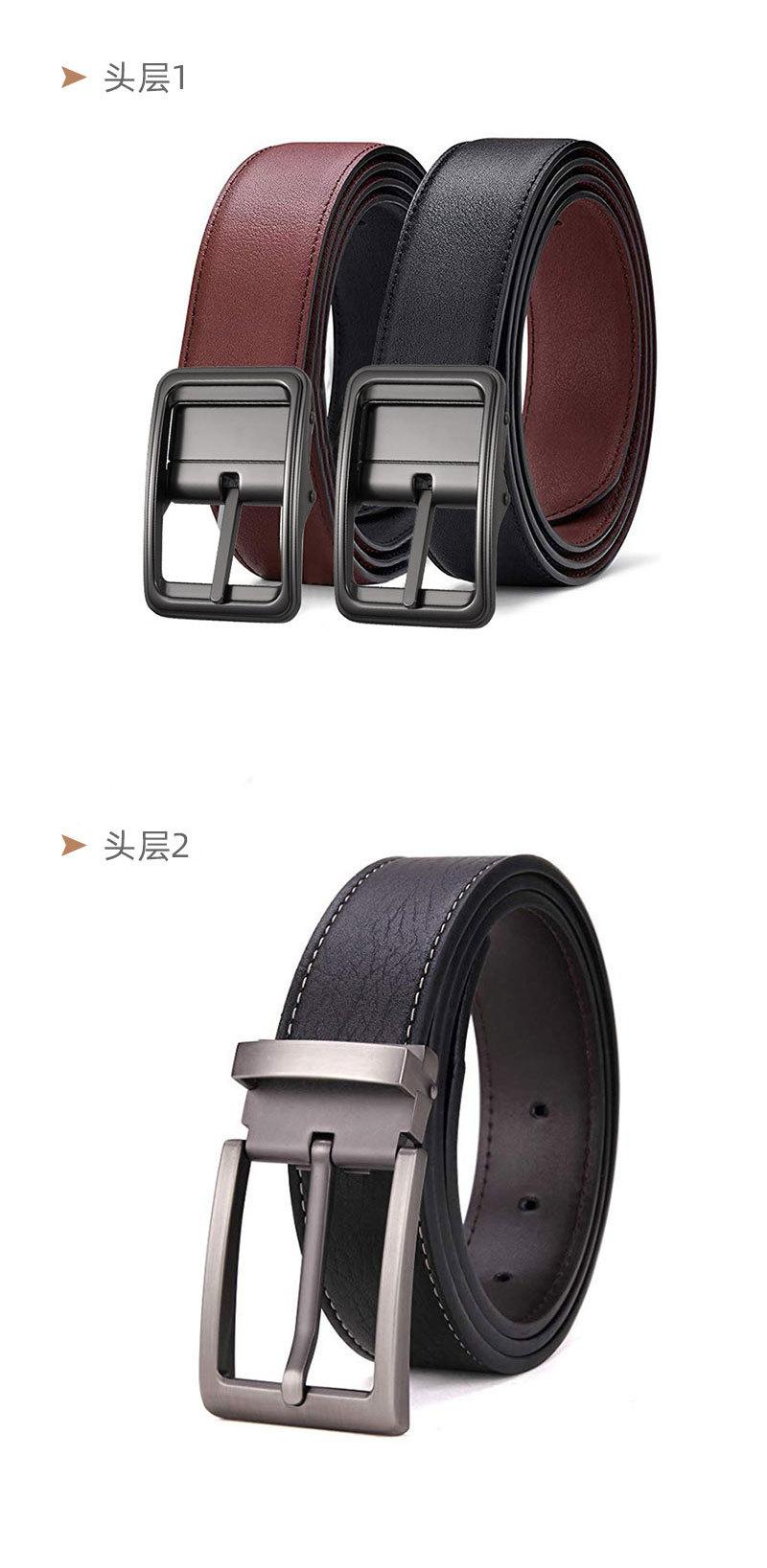 Cinturón de piel de vaca pura de primera capa para hombre, cinturón de cuero con hebilla de pasador de aleación, cinturón de hebilla de pasador de doble cara combinable, cinturón informal para pantalones de hombre