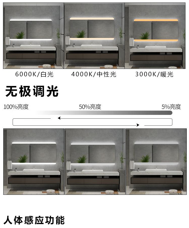 [Human body induction] + double touch + three-color light + defogging (electrodeless dimming)