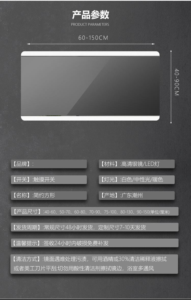 Espejo inteligente nórdico rectangular transfronterizo, espejo de baño antivaho, espejo de cristal para baño, espejo cosmético para colgar en la pared
