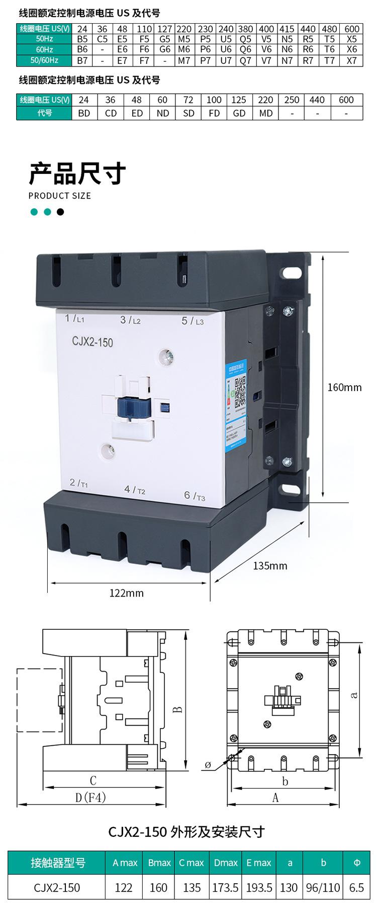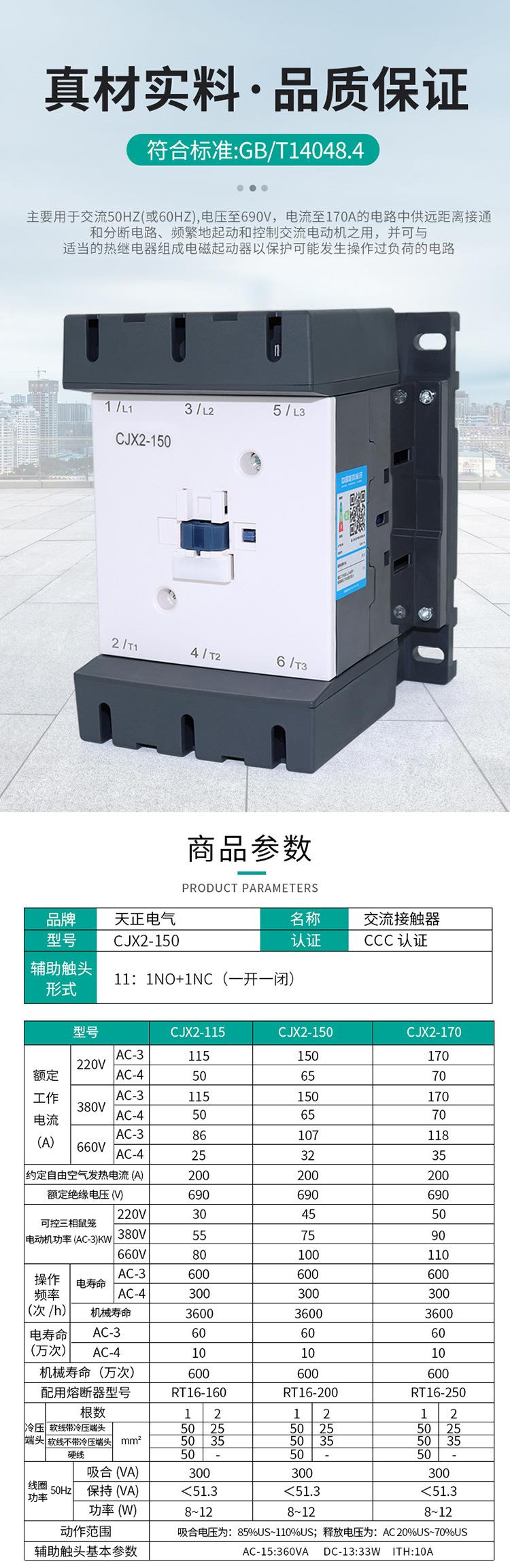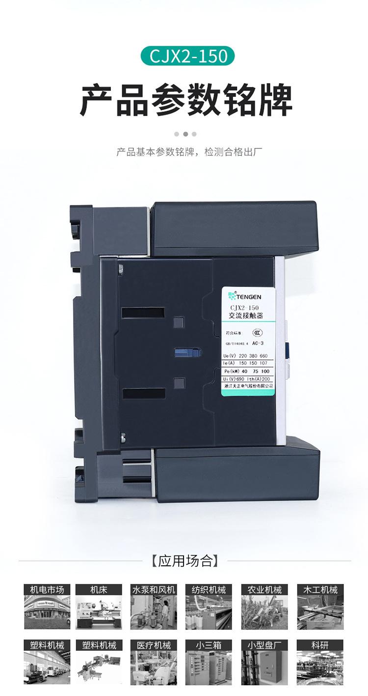 Contactor de CA eléctrico Tengen Tianzheng CJX2-150 LC1D150 trifásico 150 A 220 V 380 V
