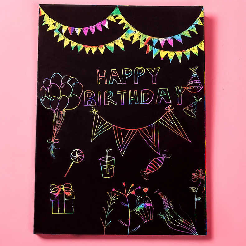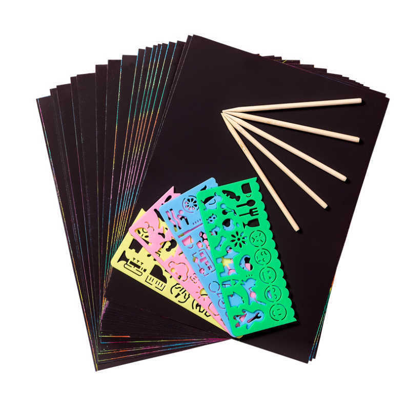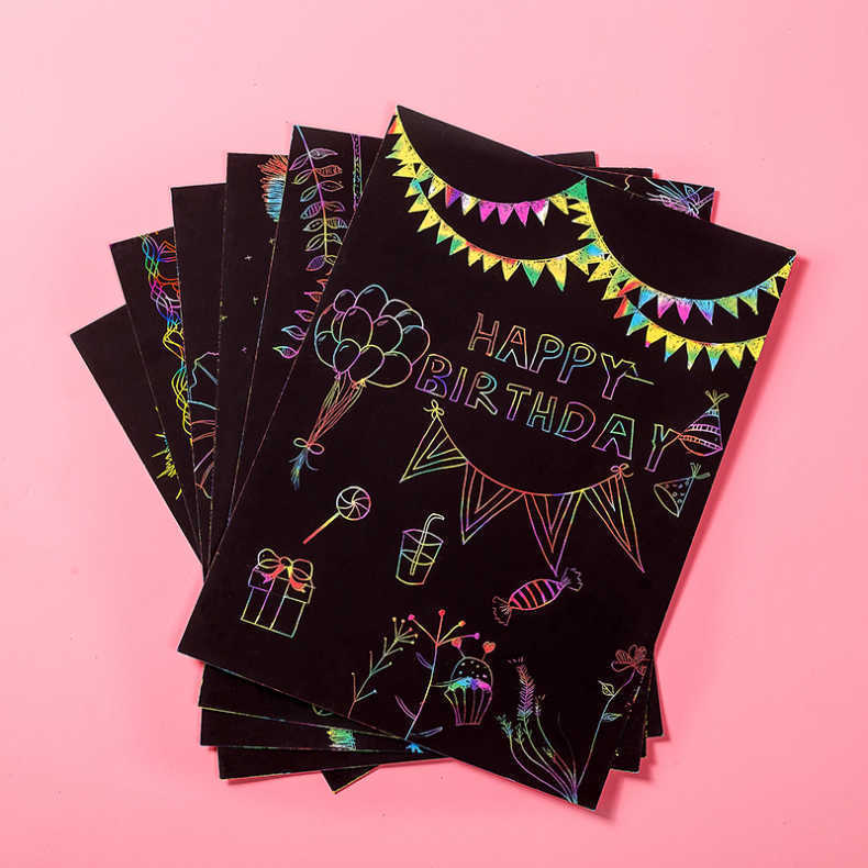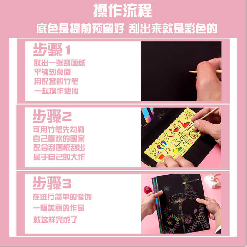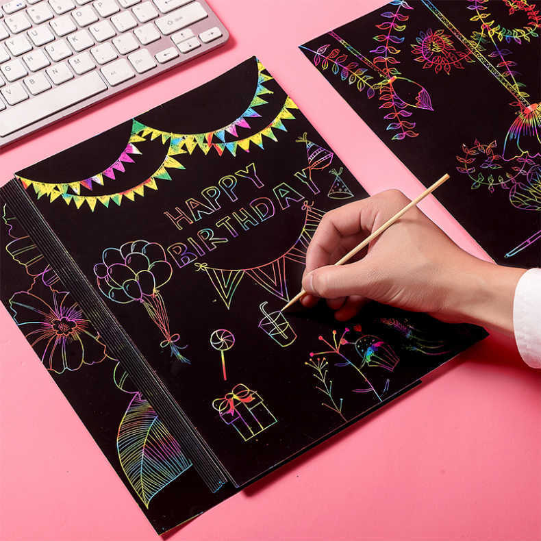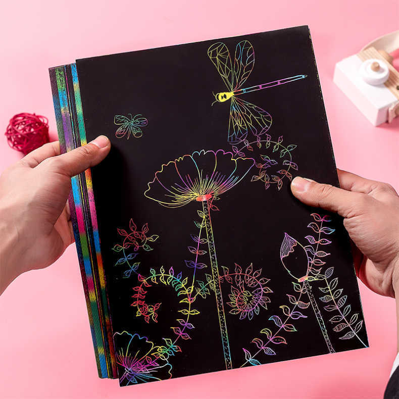 Pintura de Arte para Niños Colorida para Rascar Transfronteriza Hecha a Mano Creativa DIY Pintura Papel Graffiti Escena Nocturna Totalmente Negra Pintura para Rascar al por Mayor