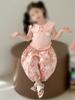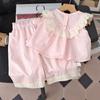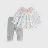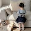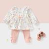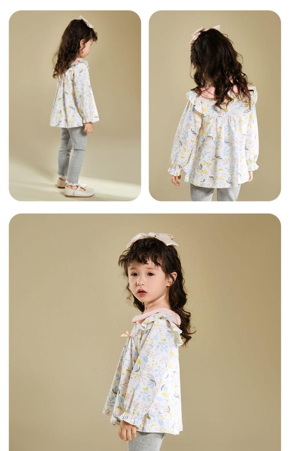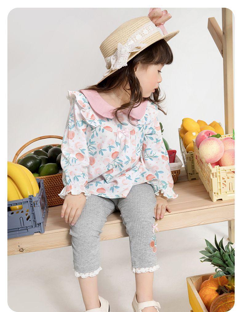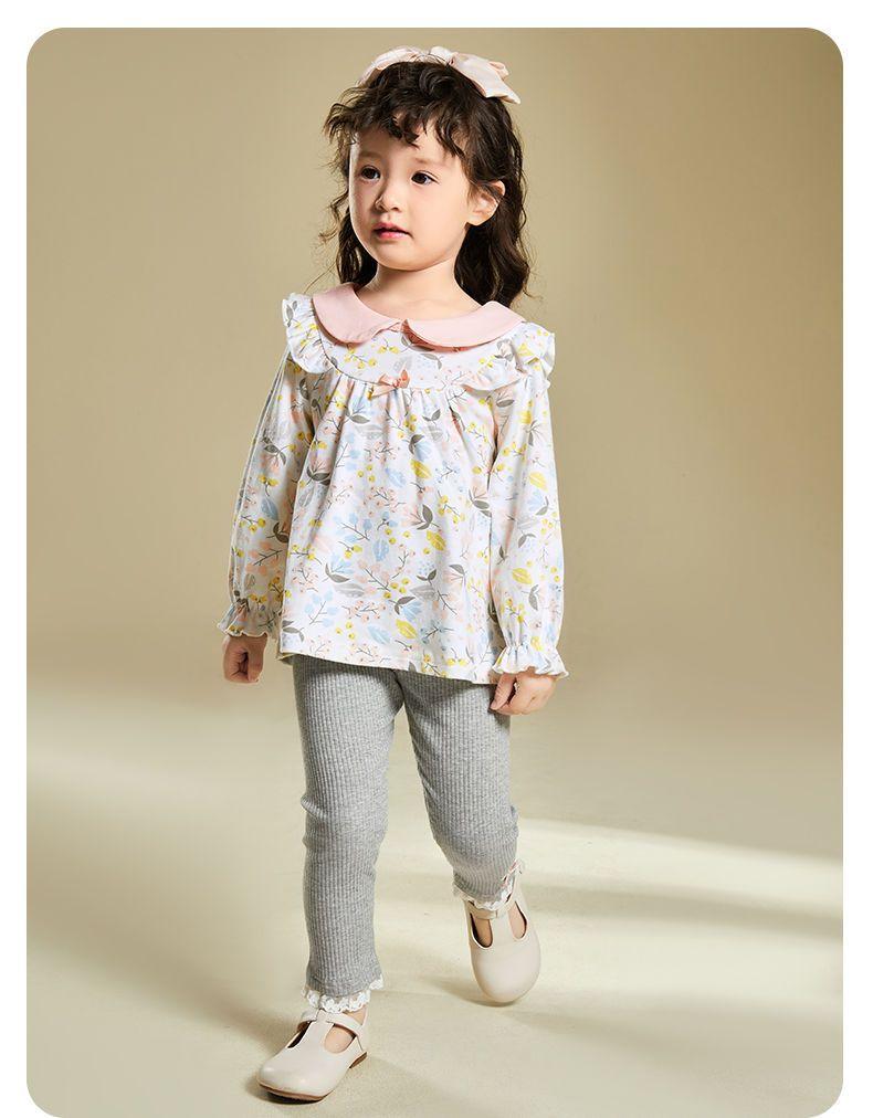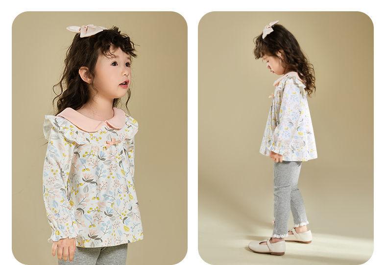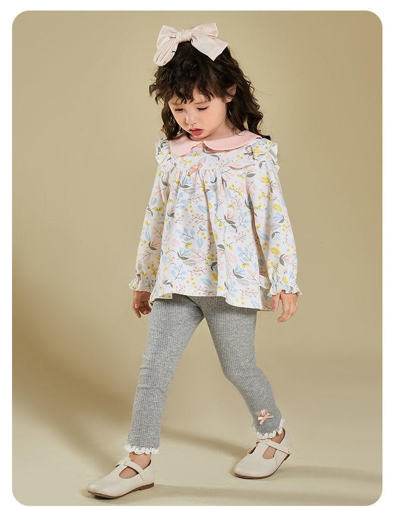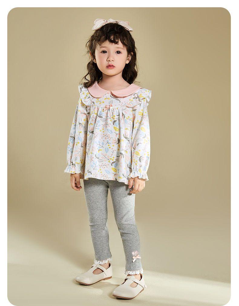 Traje de primavera y otoño para niñas, elegante, personalizado, de marca de moda, estilo coreano, con cuello de muñeca floral, camisa y leggings.