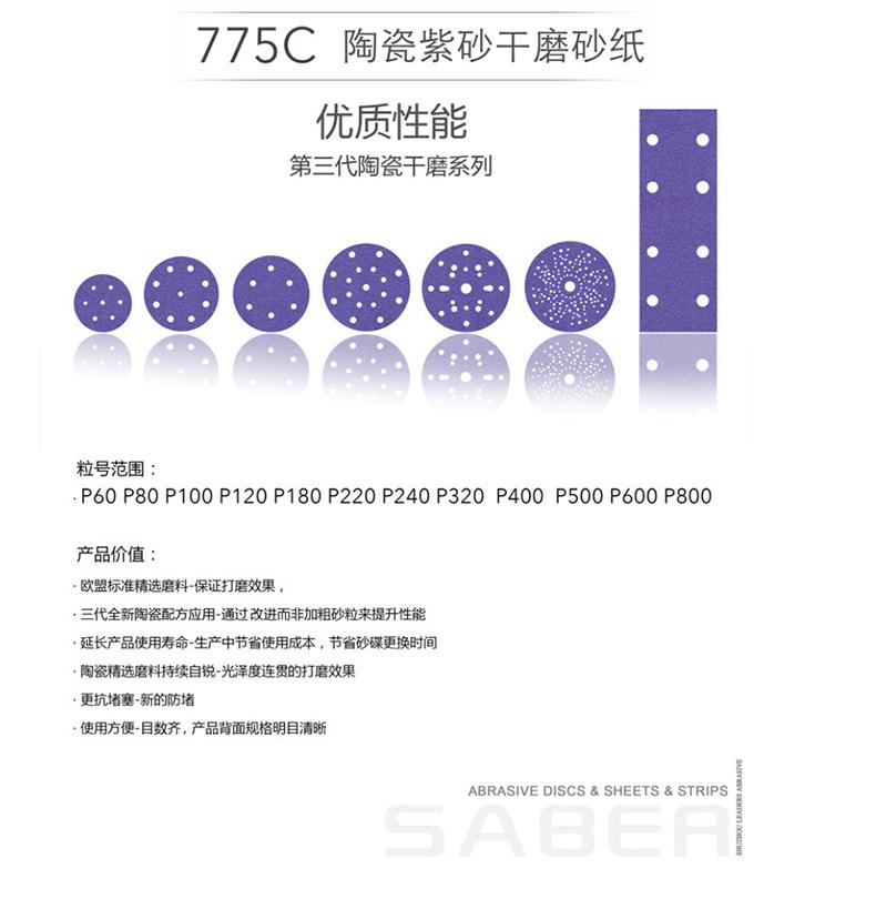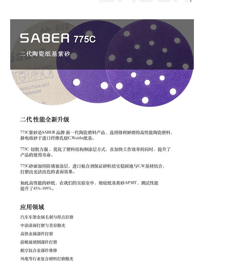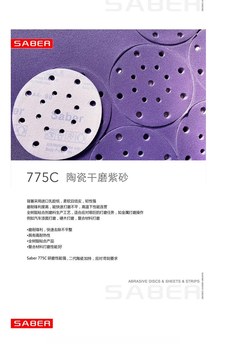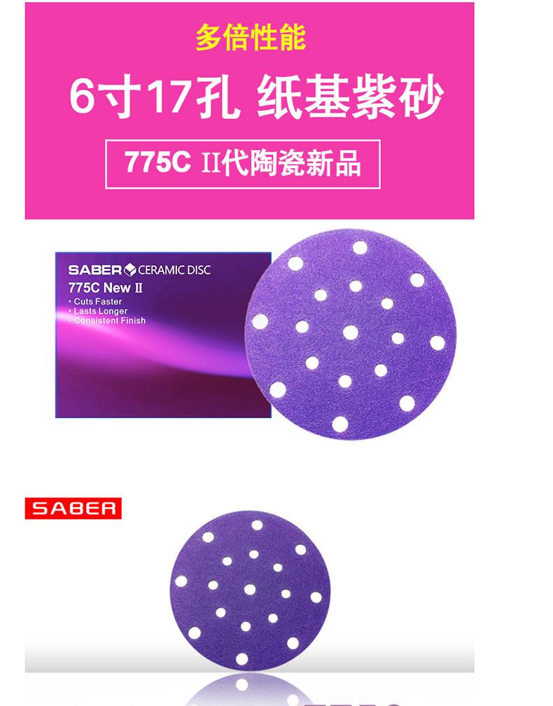 Papel de lija para pulido en seco de automóviles Festo 775C, abrasivo cerámico morado, de 6 pulgadas y 17 orificios.