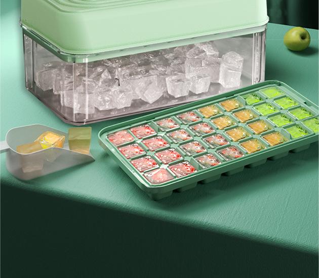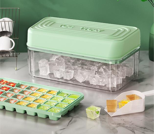 Molde de Cubitera con Tapa Caja de Almacenamiento de Hielo de Grado Alimenticio Nevera Congelador Artefacto de Hielo para el Hogar Caja de Almacenamiento de Hielo de Gran Capacidad