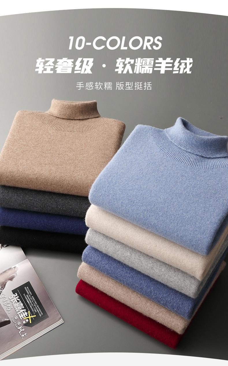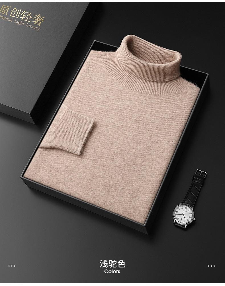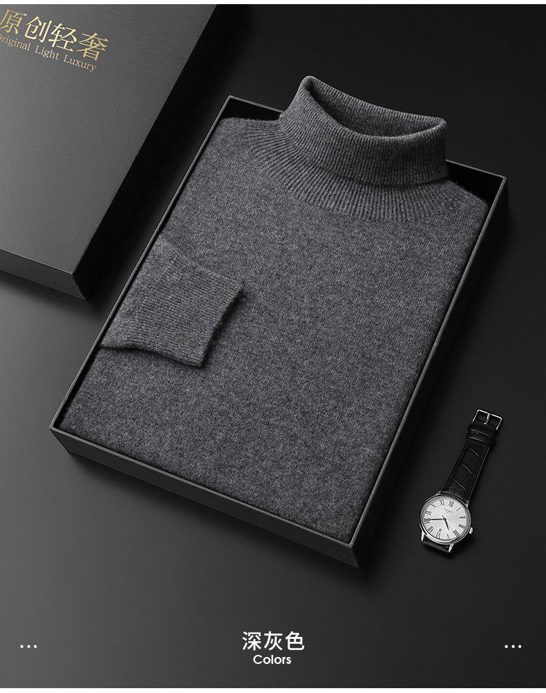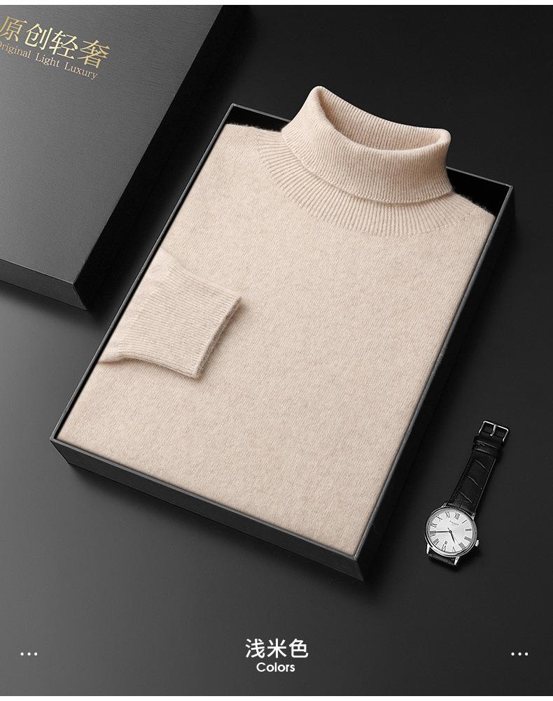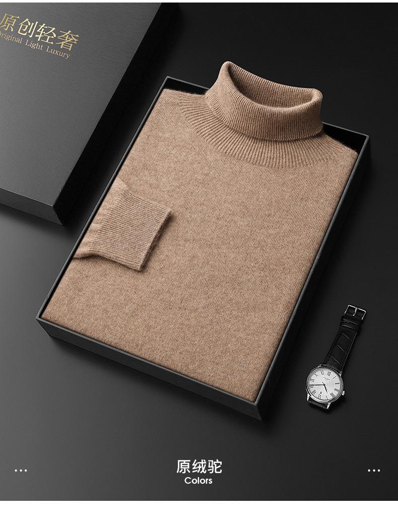 Suéter de cachemira de solapa alta para hombre, suéter holgado de punto de color sólido, suéter de fondo, otoño e invierno, 2024