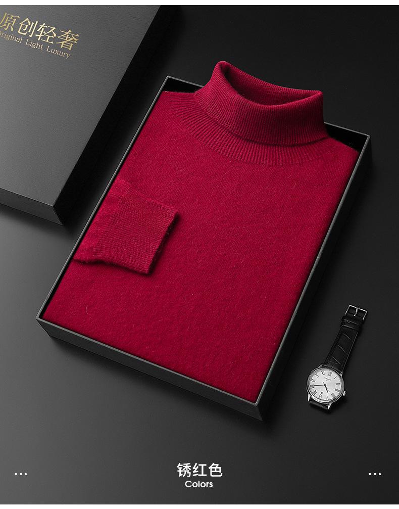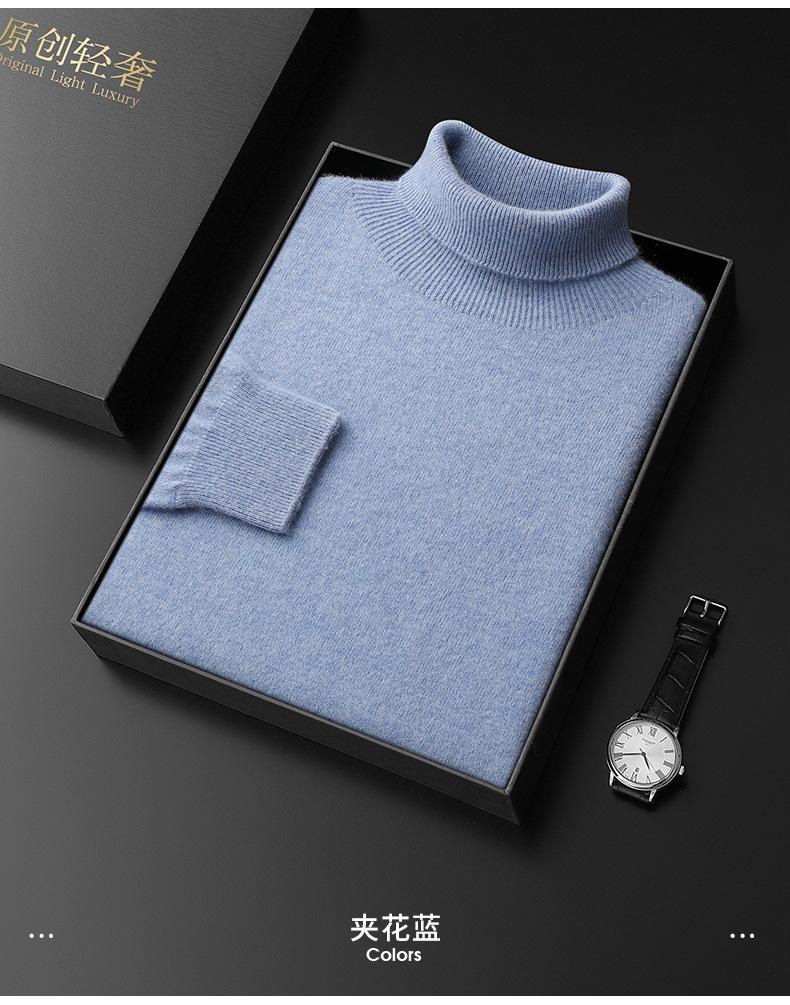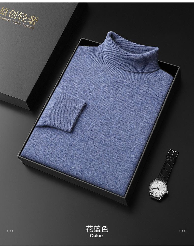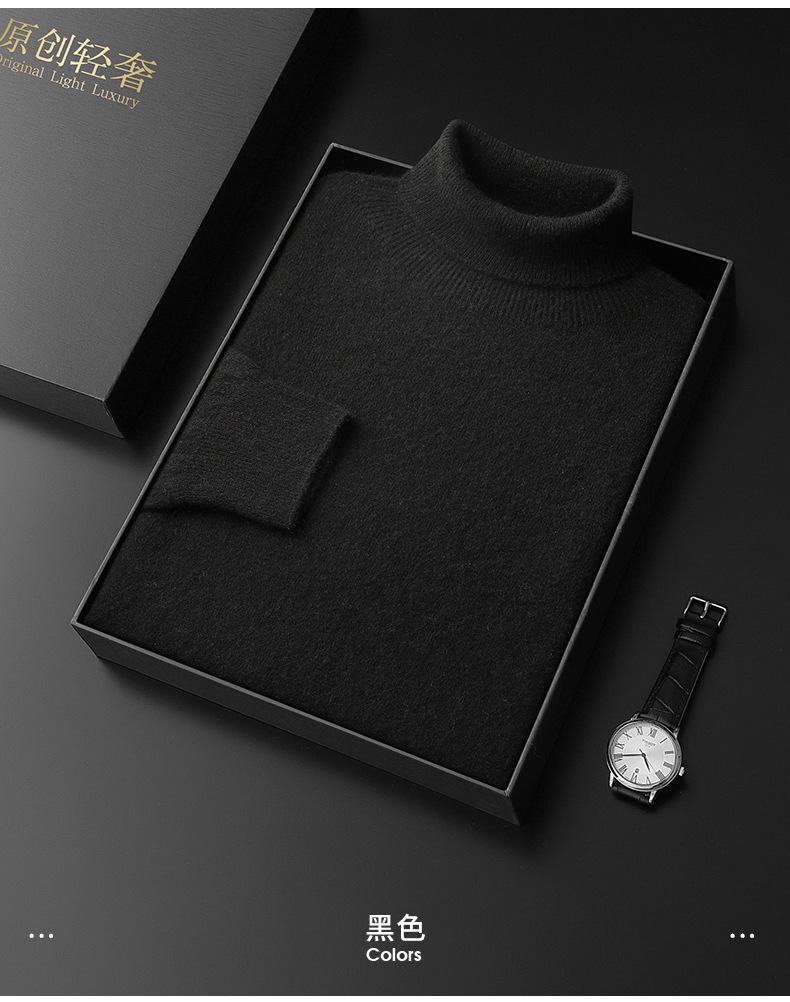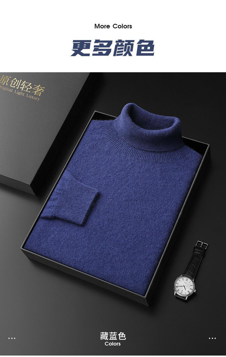 Suéter de cachemira de solapa alta para hombre, suéter holgado de punto de color sólido, suéter de fondo, otoño e invierno, 2024