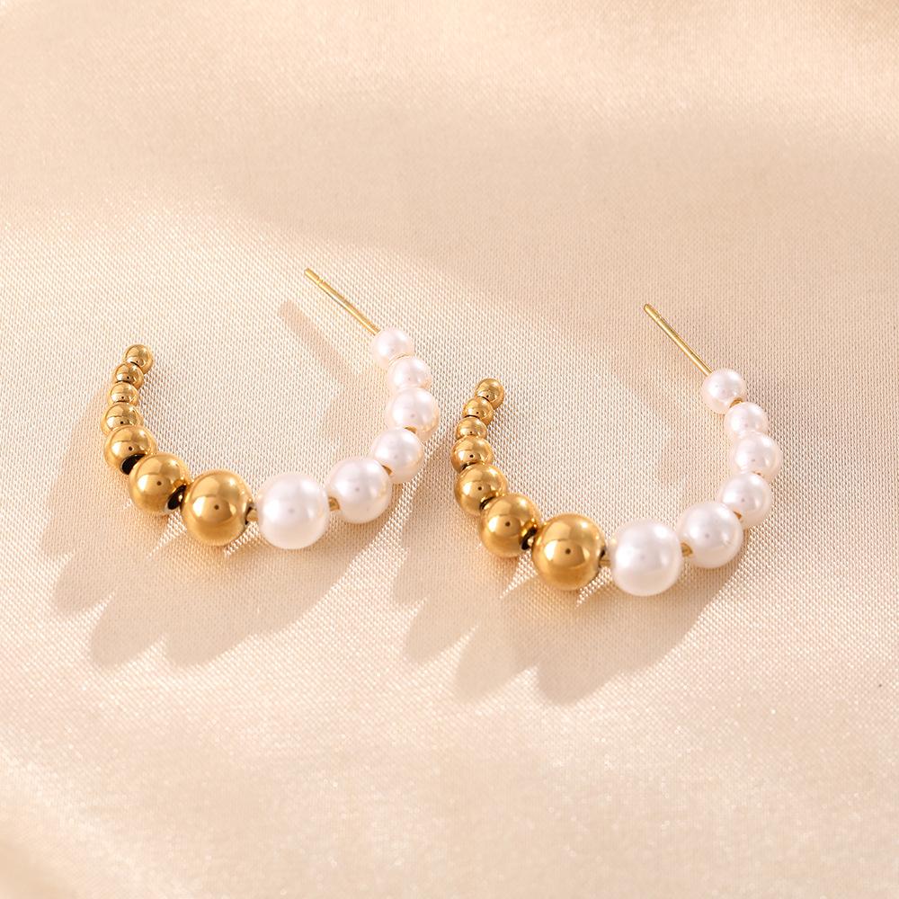 Pendientes creativos en forma de C que no se decoloran, de nueva moda europea y americana, estilo frío para mujer, pendientes de cuentas simples.