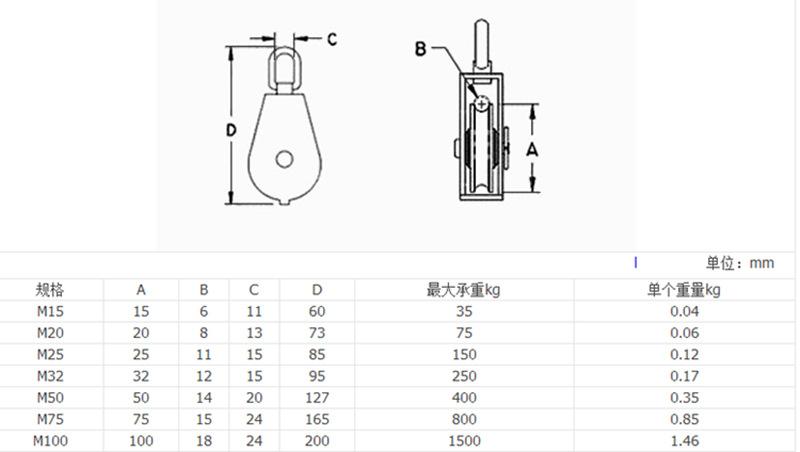 Single pulley M15, Single pulley M20, Single pulley M25, Single pulley M32, Single pulley M50, Single pulley M...