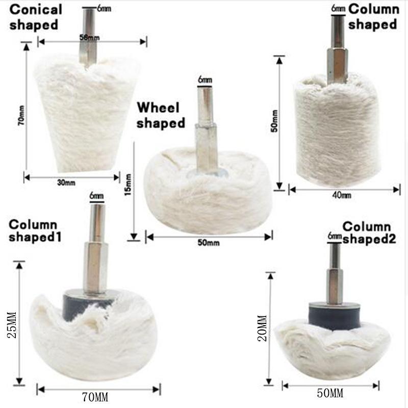 Rueda de tela blanca al por mayor transfronteriza con mango pulido espejo encerado cónico cilíndrico cabeza de pulido rueda de tela diámetro del mango 6 mm