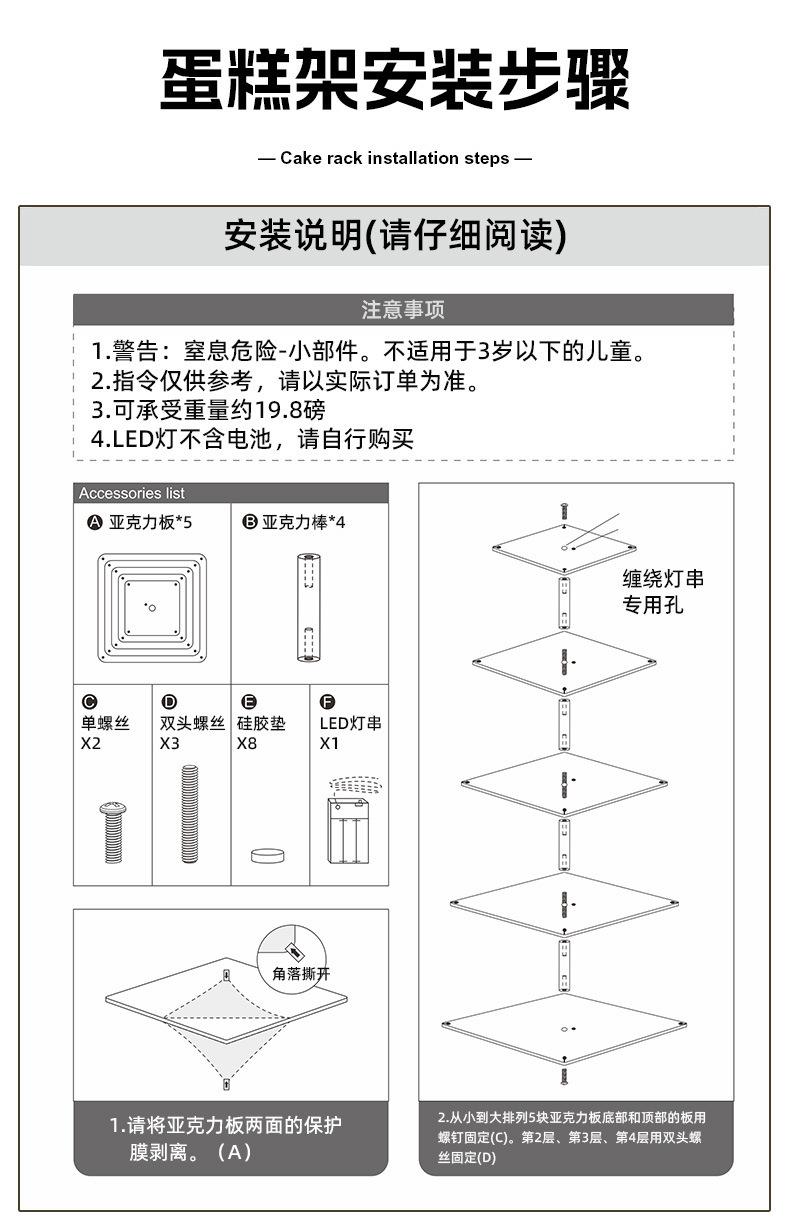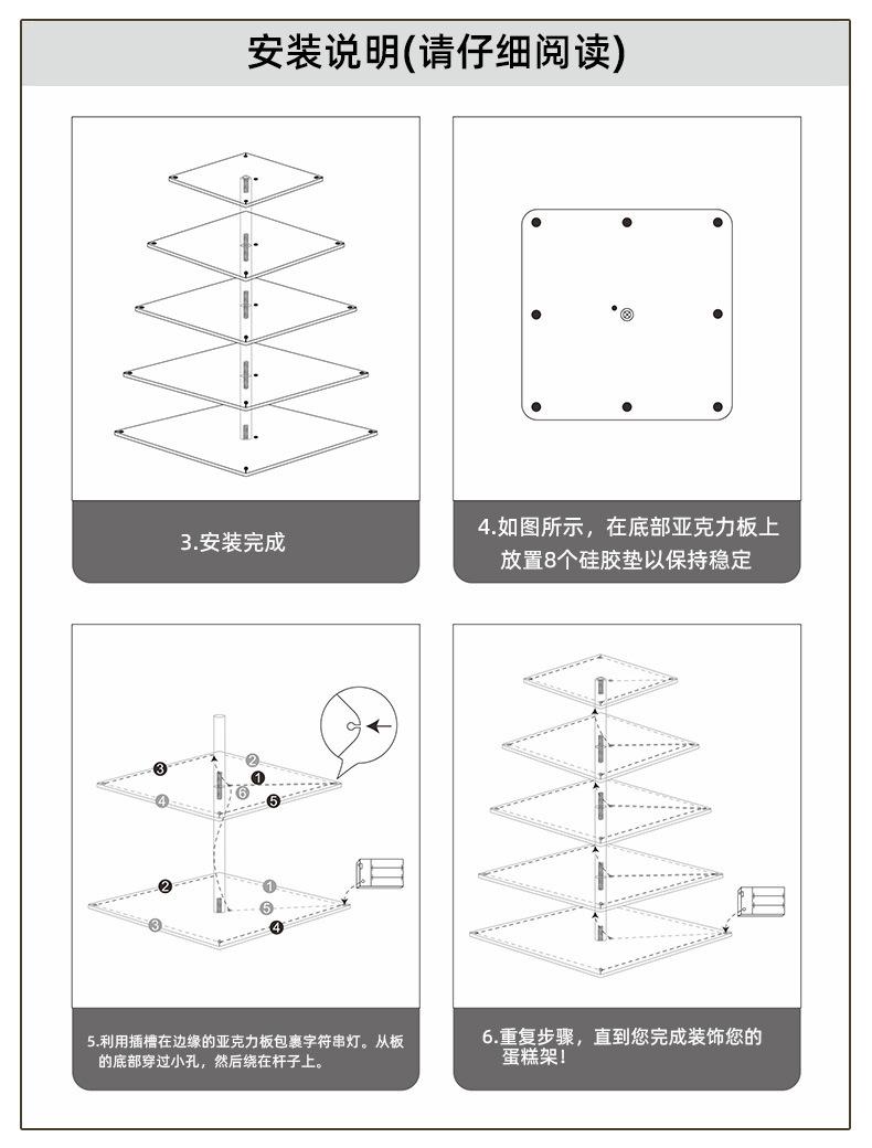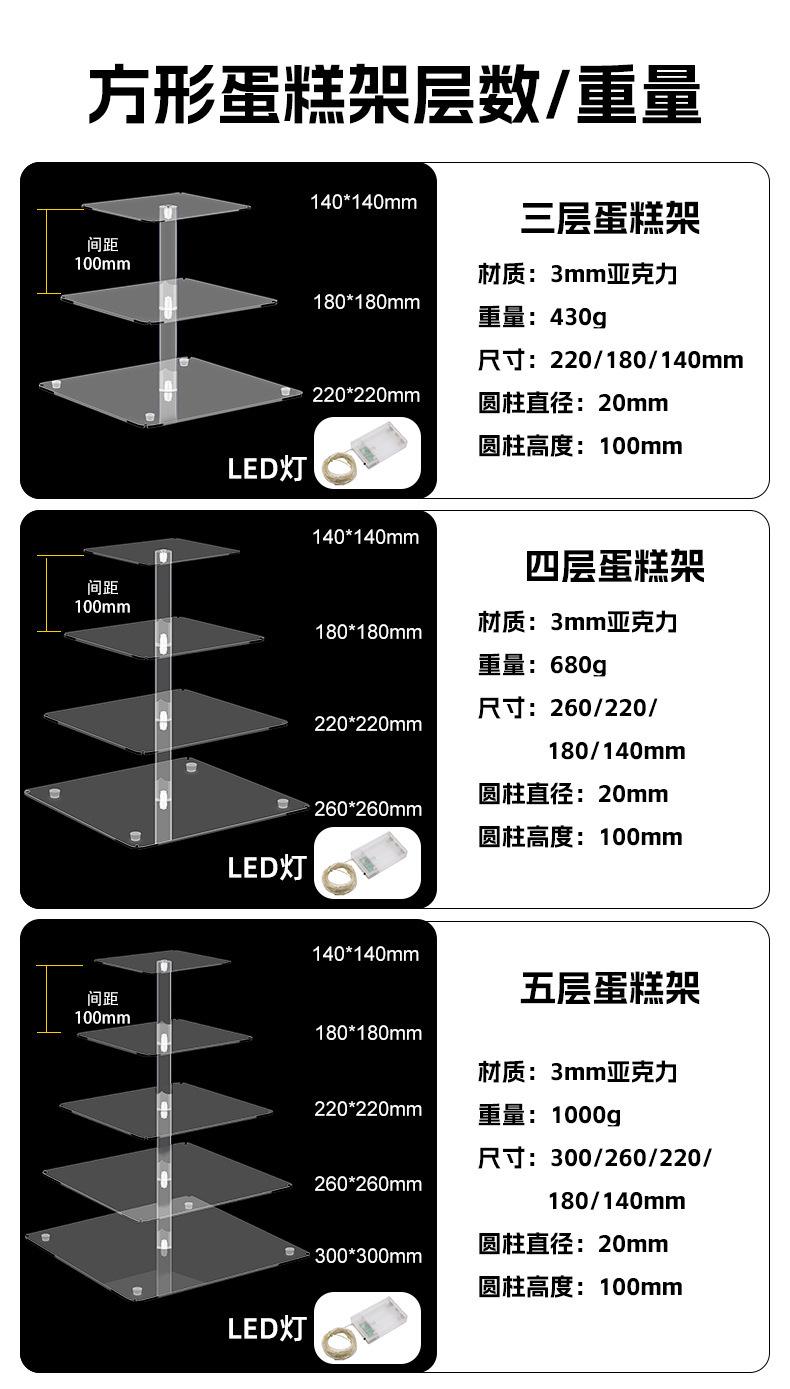 Three-layer square with LED light (column height 100mm panel thickness 3mm diameter 140-180-220mm), Four-layer...