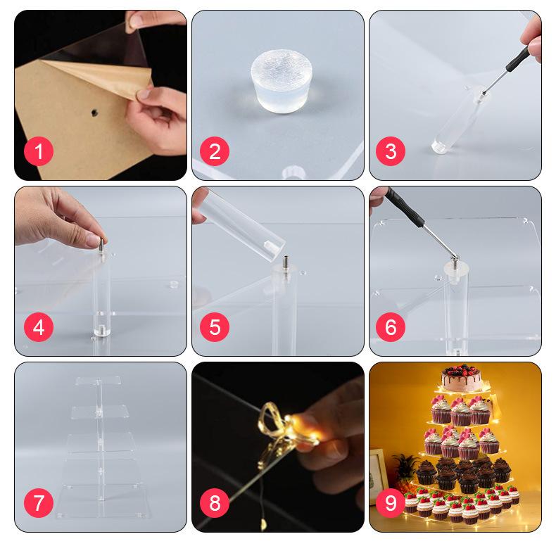 Compra Soporte de exhibición acrílico transfronterizo de escritorio para pasteles, estante de almacenamiento multicapa, vidrio orgánico transparente, soporte de exhibición luminoso al por mayor en Joom.pro
