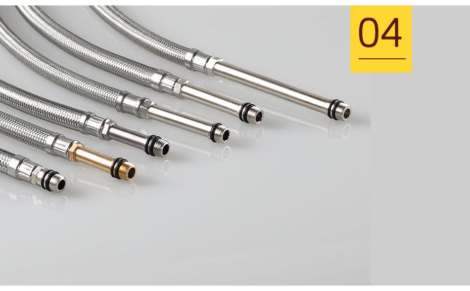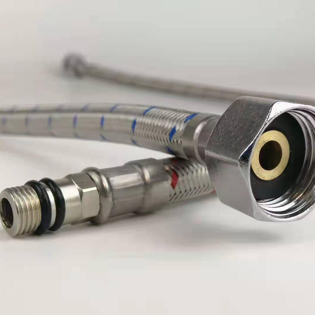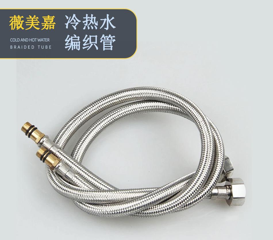 Venta al por mayor de tubería de agua tejida de acero inoxidable 304 para baño, grifo de interfaz de cuatro puntos de doble cabezal, válvula angular de entrada de inodoro, manguera
