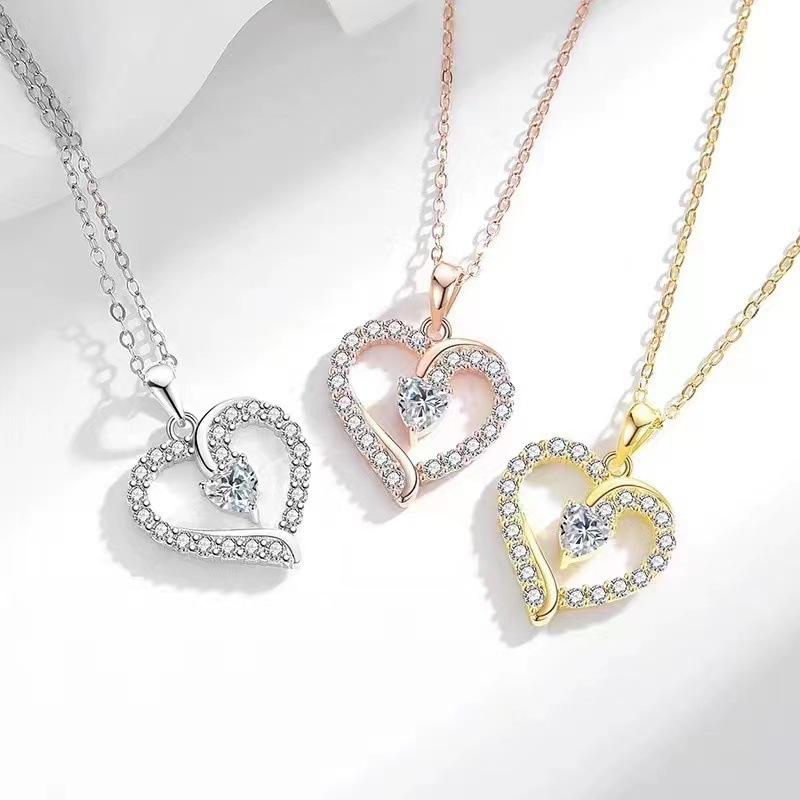 Collar de lujo ligero con forma de corazón de oro rosa y plata esterlina s925 europeo y americano para mujer, cadena de clavícula elegante a juego con todo, regalo de San Valentín