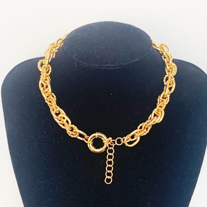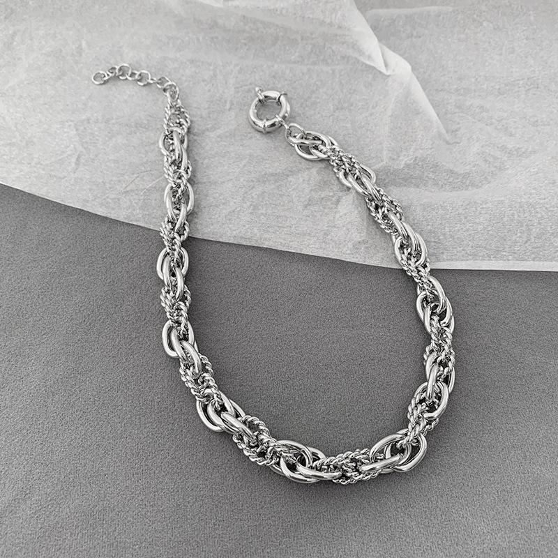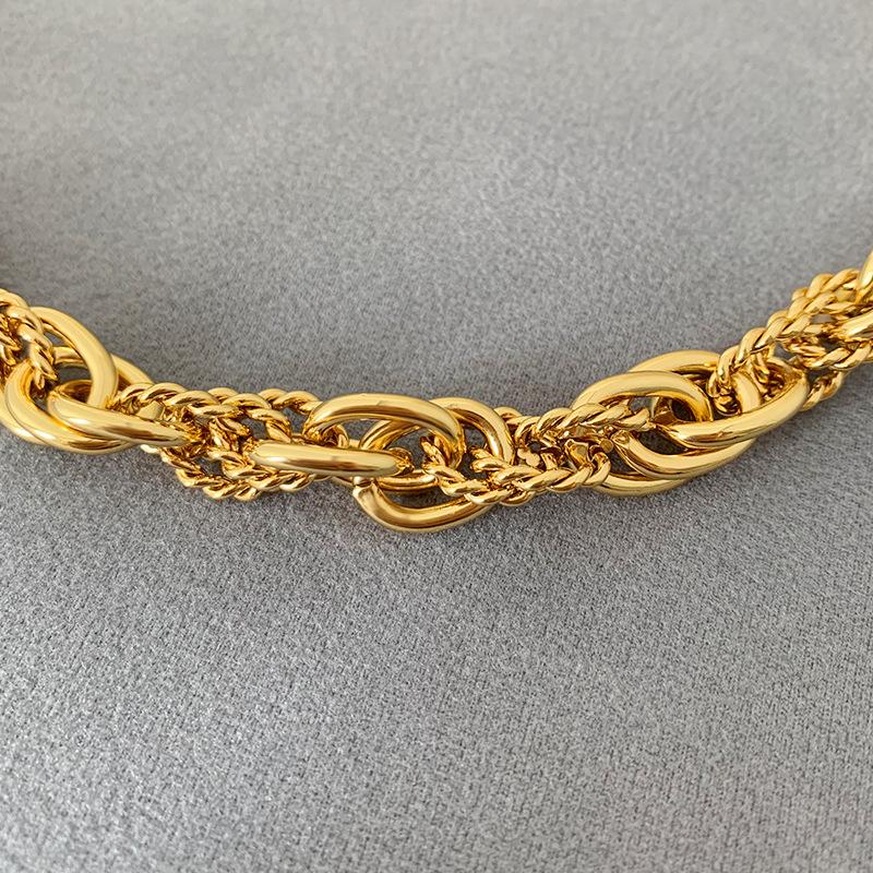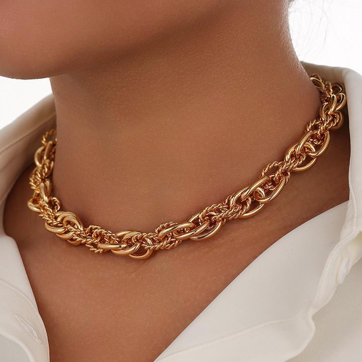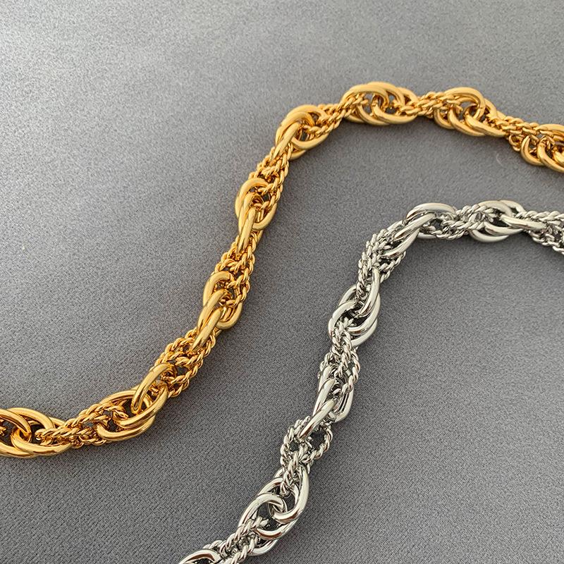 Collar de cadena exagerada hecho a mano con costuras de plata y oro retro europeo y americano, cadena de cuello Ins de lujo ligera y de alta calidad