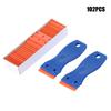 Juego de 122 hojas raspadoras de plástico combinadas para eliminar pegamento, pegatinas, calcomanías y limpiar cristales de automóviles.