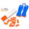 122 piece set (2 blue plastic scraper 120 blades)