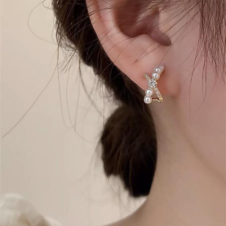 Pendientes pequeños y exquisitos de perlas cruzadas para mujer, con aguja de plata S925, diseño de nicho de lujo ligero y popular, pendientes de alta calidad.