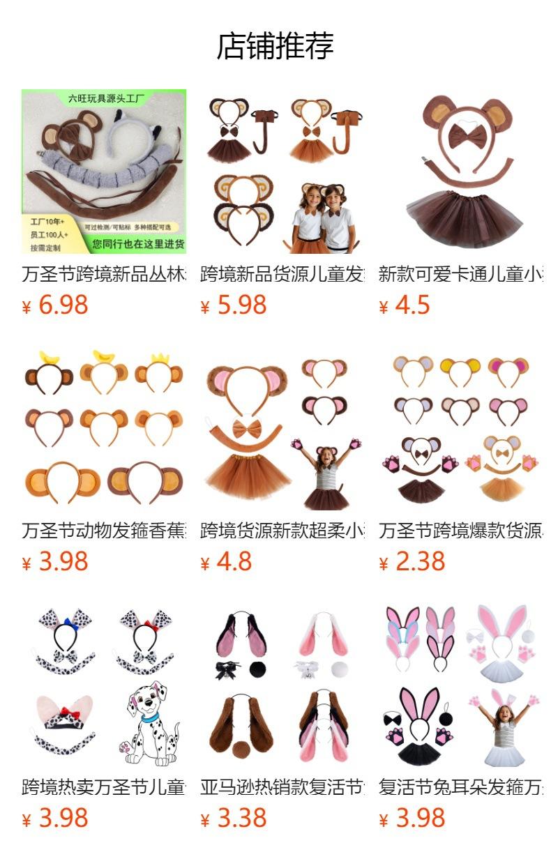 Diadema de Animales de Halloween Diadema de Mono Plátano Orejas de Monito Lindo Gorro de Felpa para Niños Suministro Transfronterizo