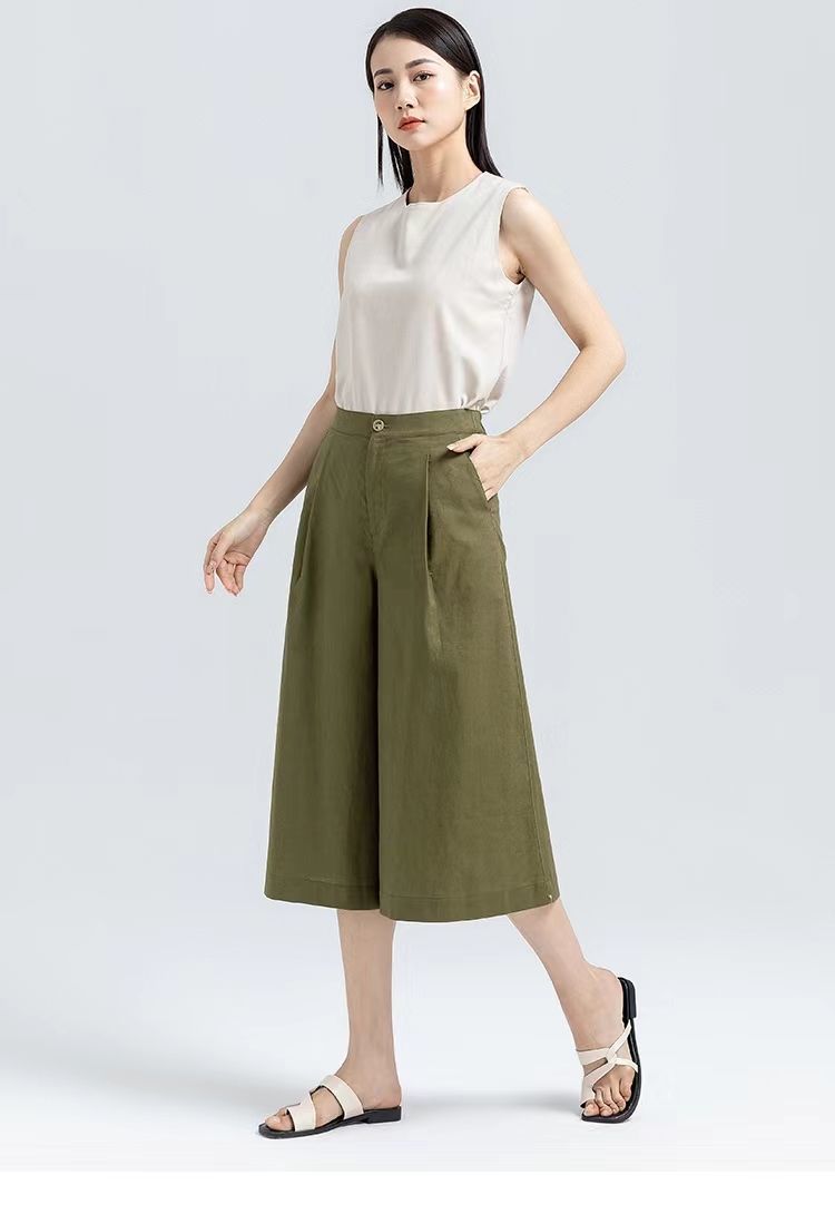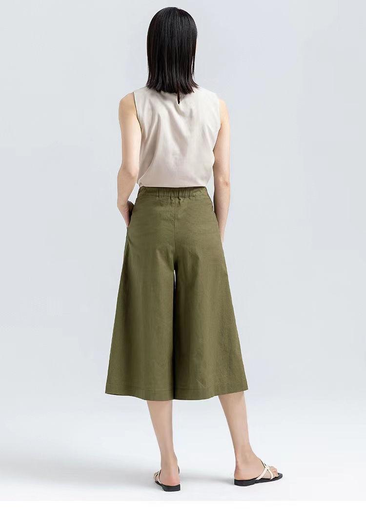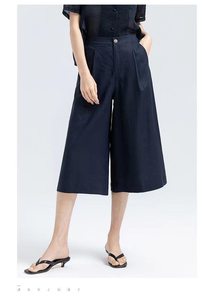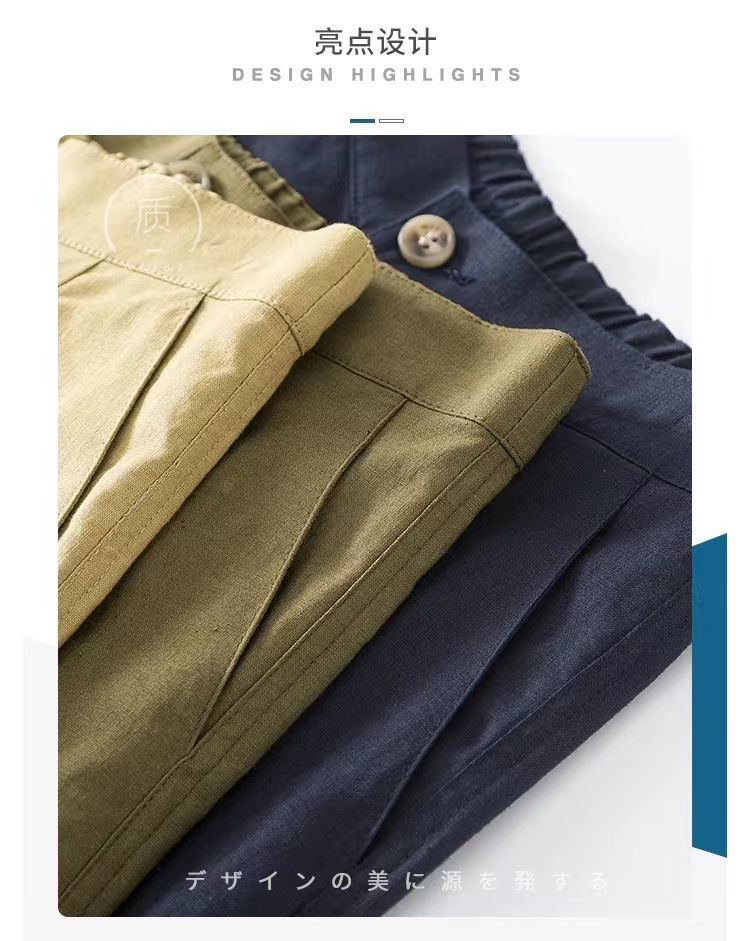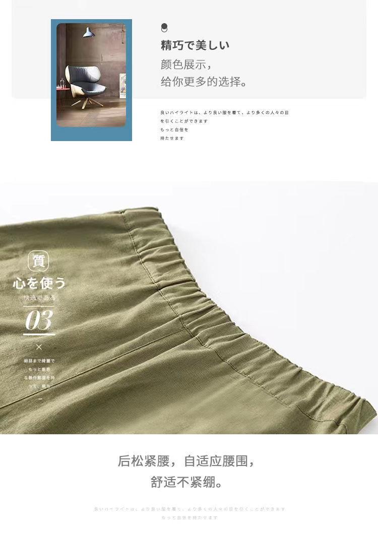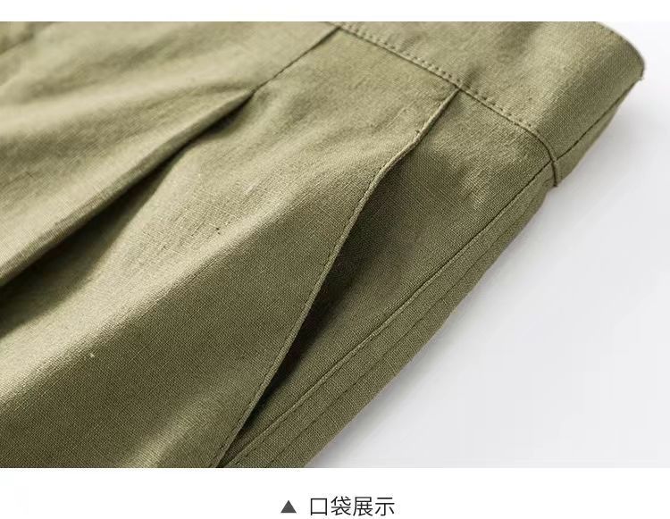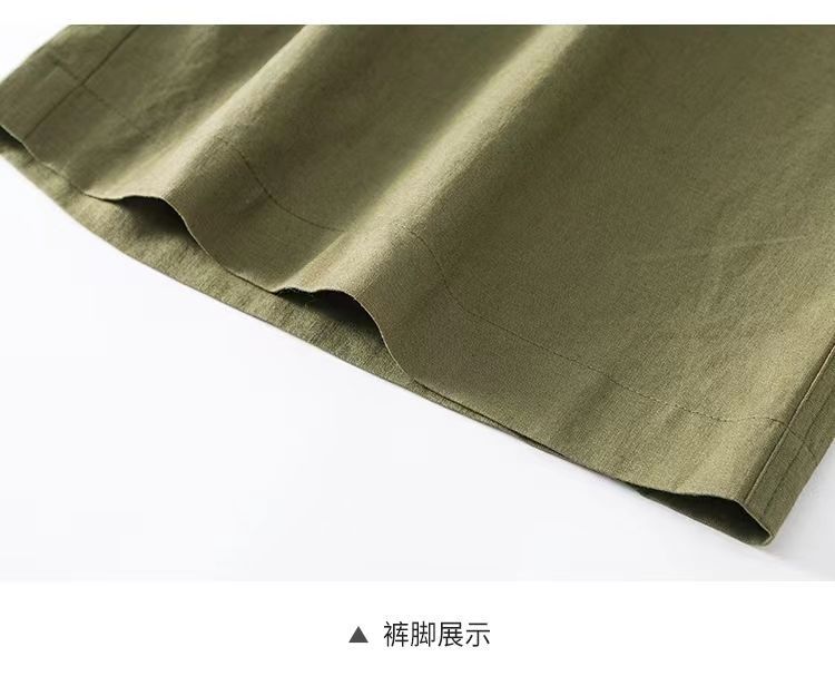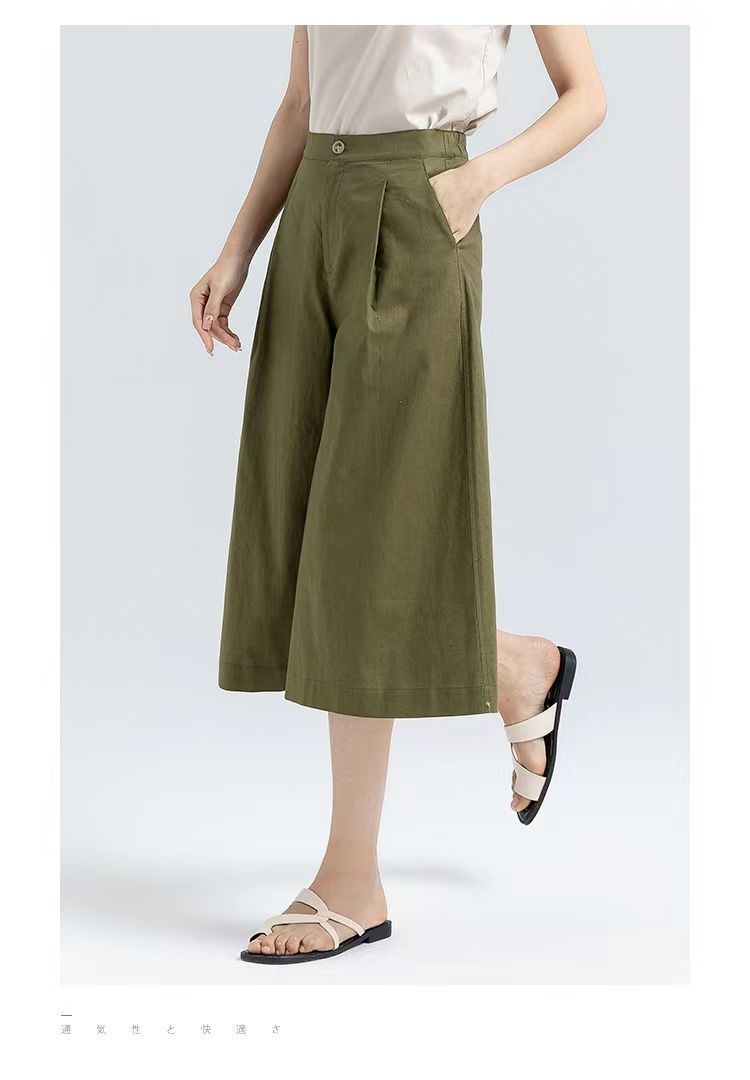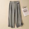 Pantalones anchos de algodón y lino para mujer, de verano, finos, sueltos, semielásticos, de cintura alta, combinables, adelgazantes, recortados.