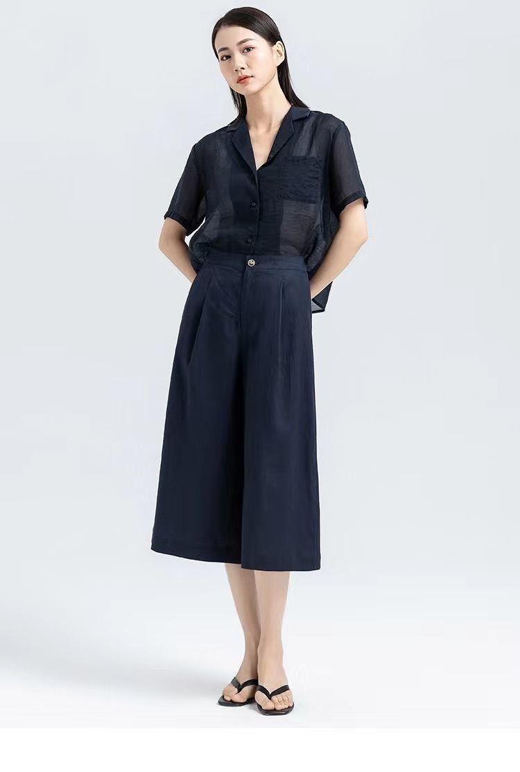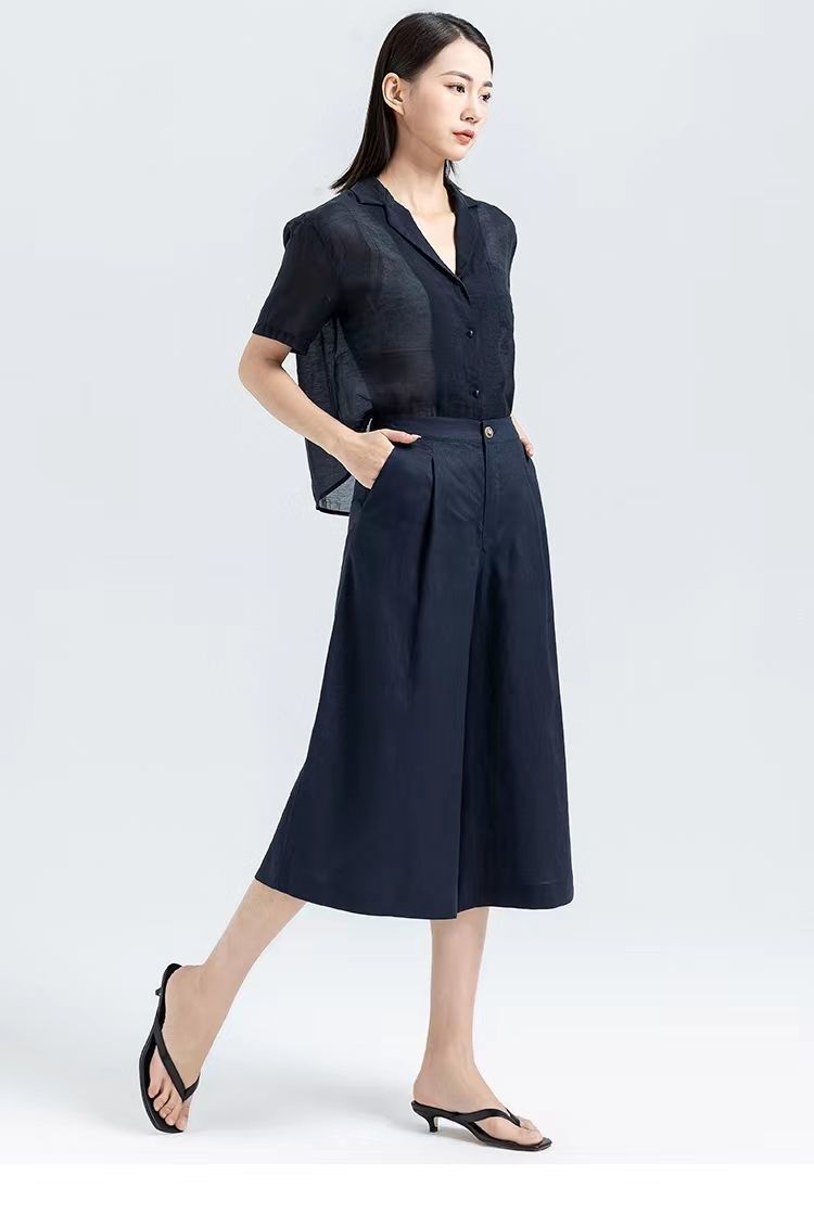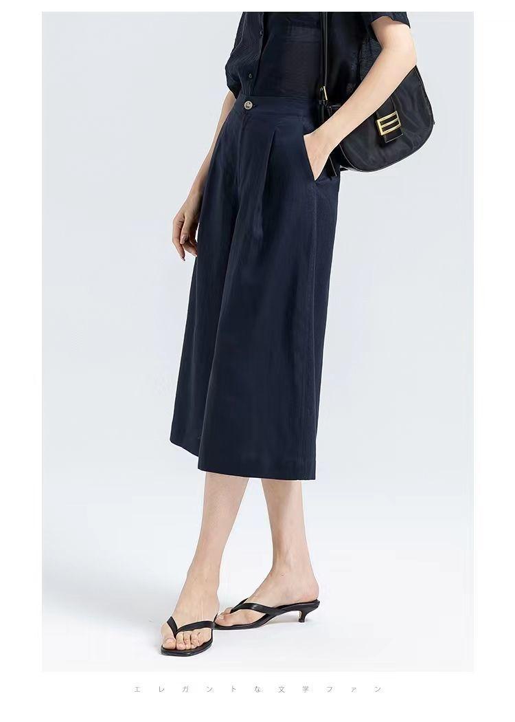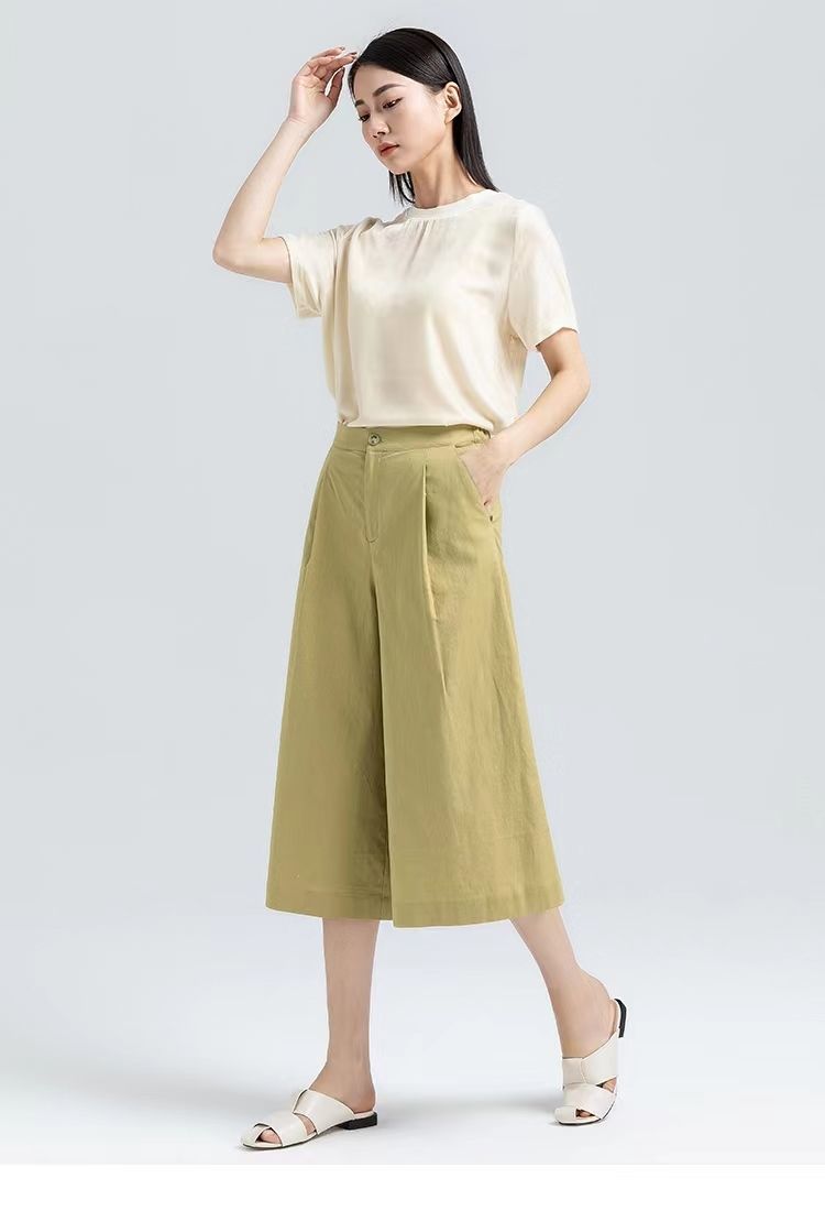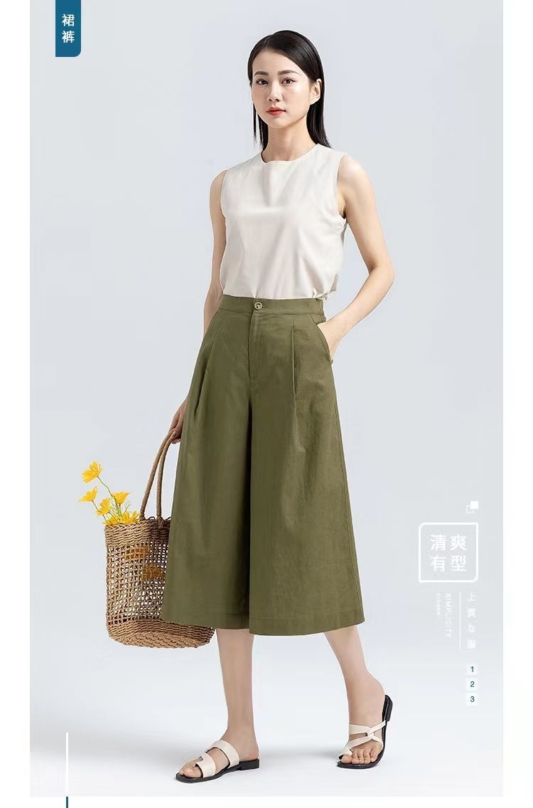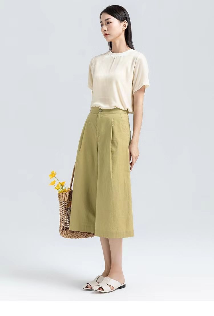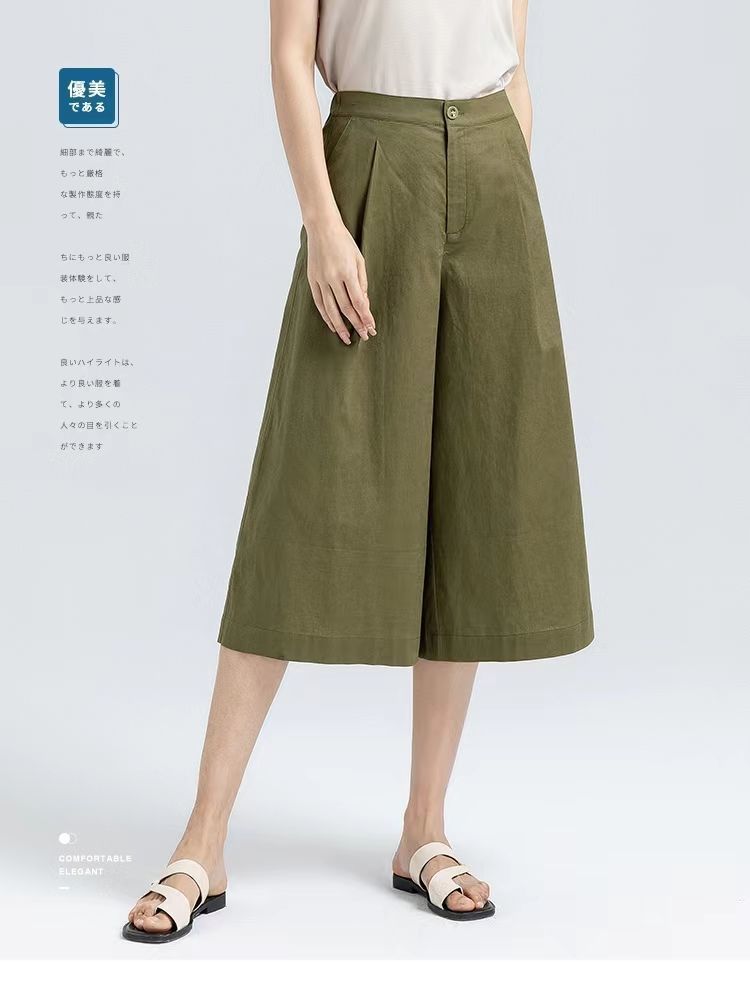 Pantalones anchos de algodón y lino para mujer, de verano, finos, sueltos, semielásticos, de cintura alta, combinables, adelgazantes, recortados.