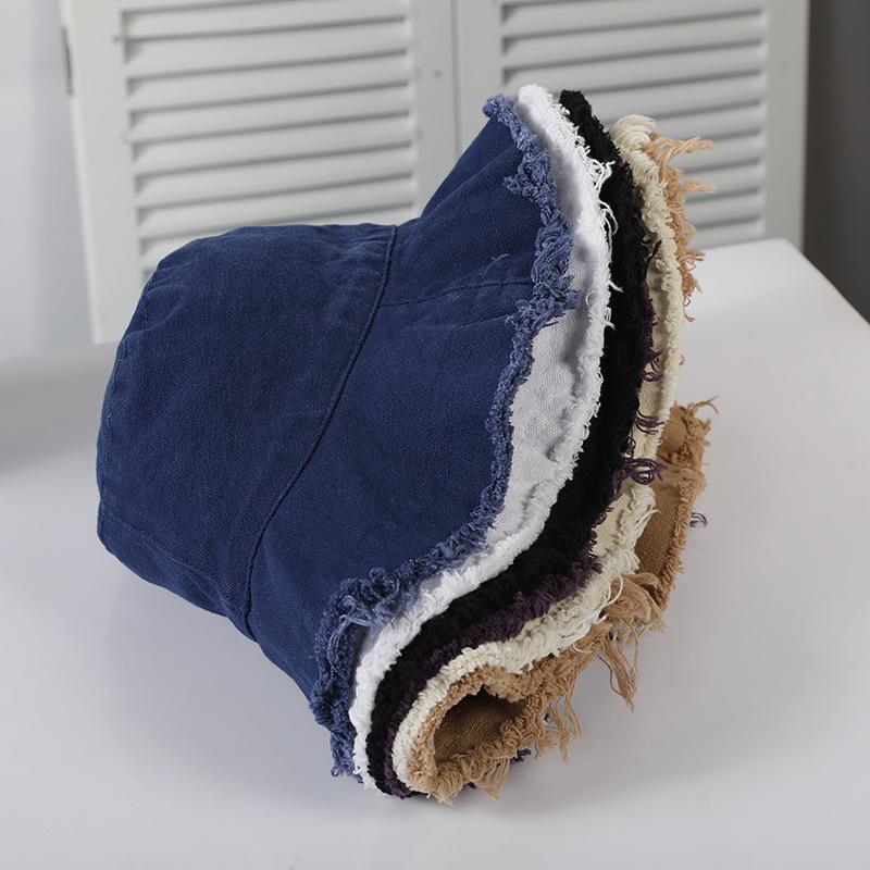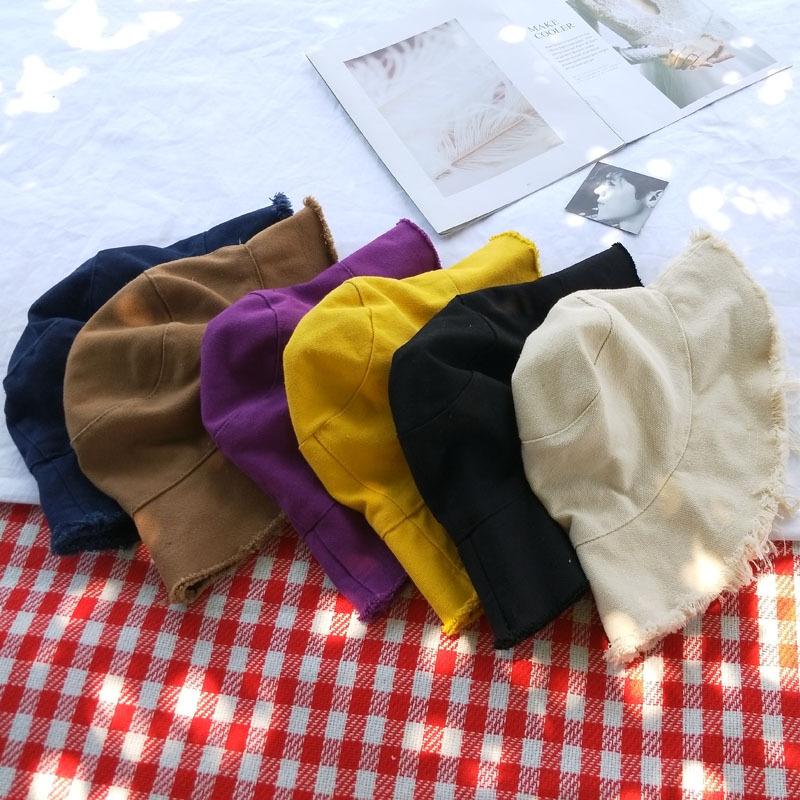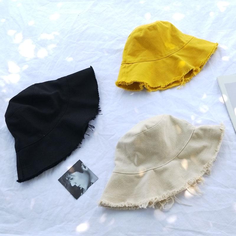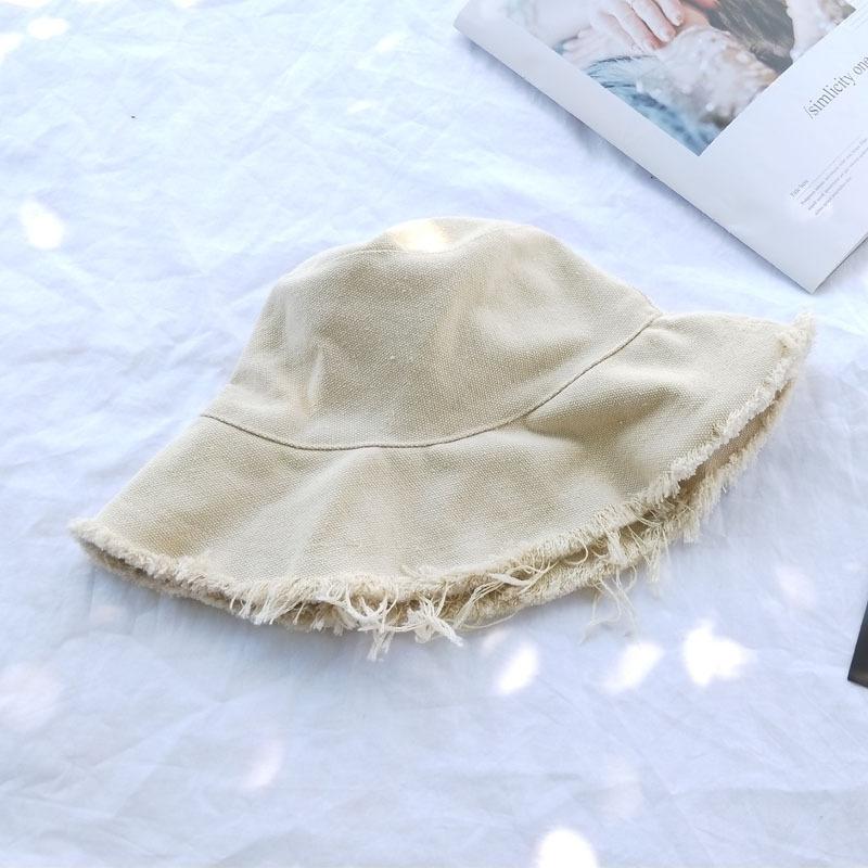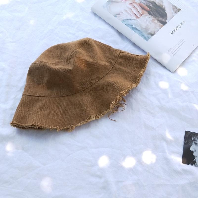 Sombrero ulzzang Harajuku de Corea del Sur, sombrero de pescador con borde sin rematar para mujer, estilo japonés de verano, estilo fresco, sombrero artístico para el sol que combina con todo.