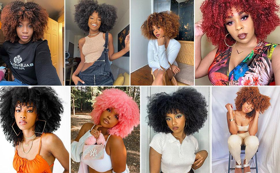 Peluca transfronteriza europea y americana Xuchang peluca africana de pequeño volumen con cabeza explosiva peluca para mujer pelucas de fibra química cobertura completa de cabeza