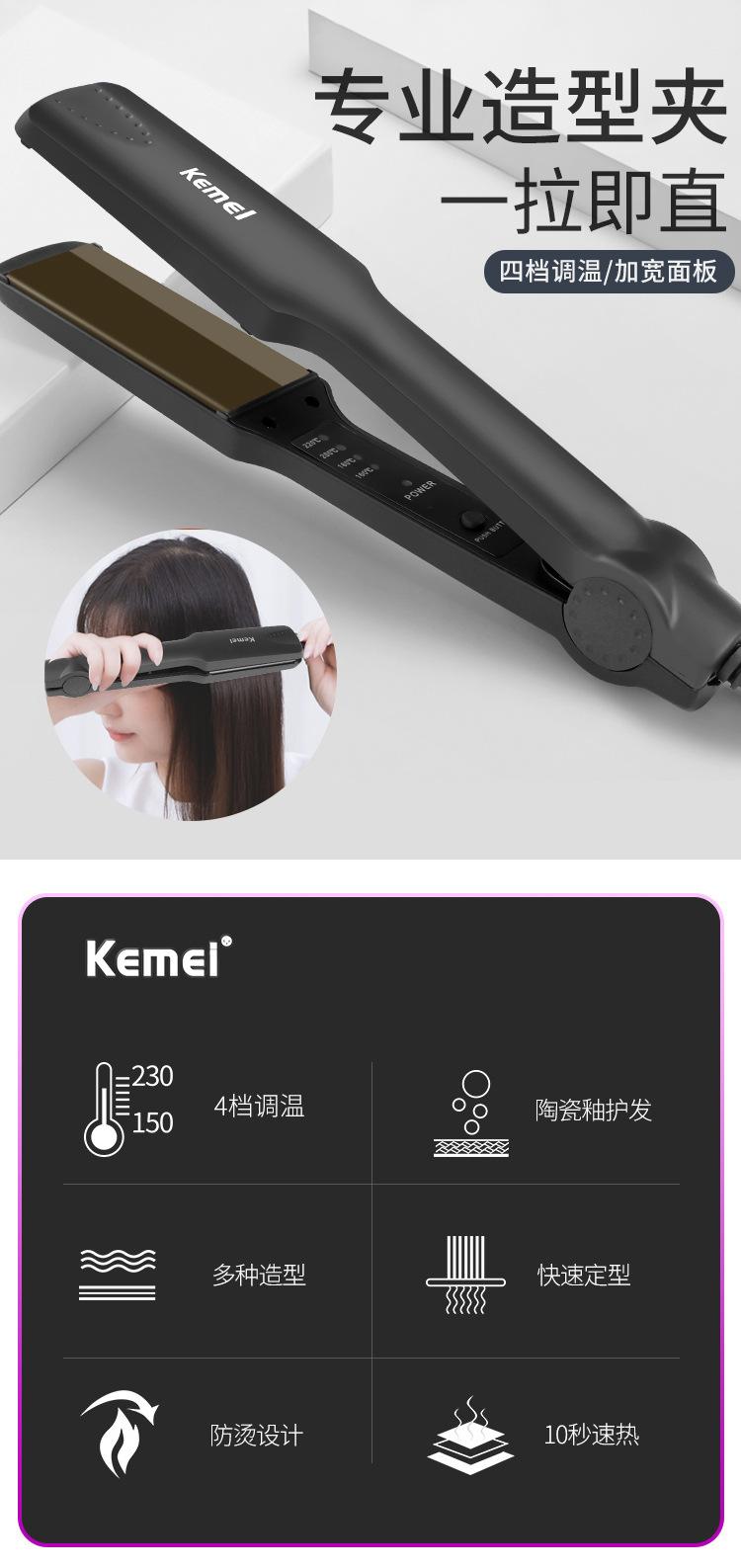 Plancha de pelo Kemei de panel grande transfronteriza 2021, nueva plancha rizadora para cabello húmedo y seco, rizadora ajustable de 5 velocidades para uso doméstico